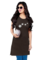 Women's Brown Long Round Neck Tshirt with Two Size Cut Size XL