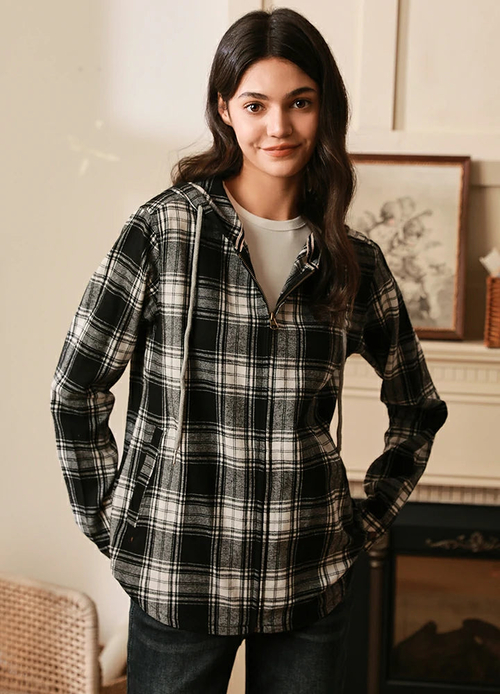 Choosing the Women's Hooded Plaid Brushed Flannel Shirt means investing in quality and style. The combination of a soft cotton blend, functional design, and trendy plaid pattern makes it a standout piece in any wardrobe. It's not just a flannel; it's a versatile garment that can be dressed up or down, making it suitable for various occasions. Experience the perfect blend of comfort and style with this essential flannel hoodie.
