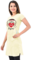 Women's Light Yellow  Long Round Neck Tshirt with Two Size Cut Size L