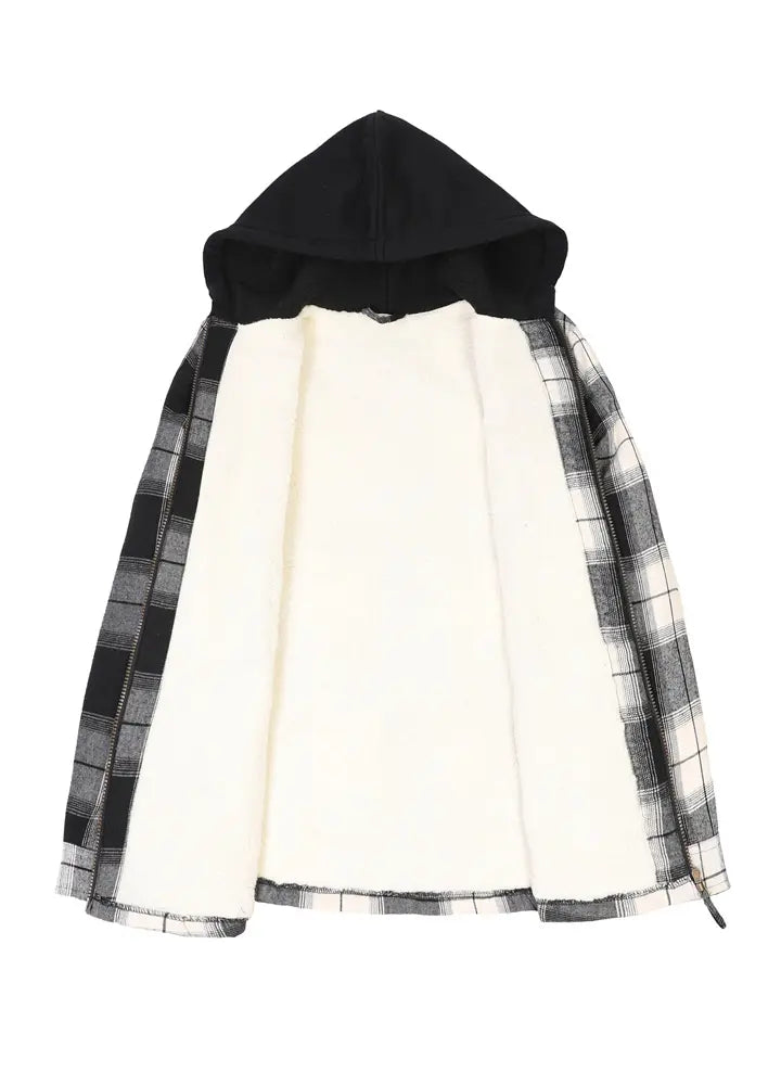 Introducing the Women's Matching Family Black White Sherpa-Lined Flannel Hoodie, a perfect blend of style, comfort, and functionality. This hoodie is designed for those who love to embrace the outdoors while looking chic and feeling cozy. The sherpa lining provides an extra layer of warmth, making it an ideal choice for chilly days and nights.