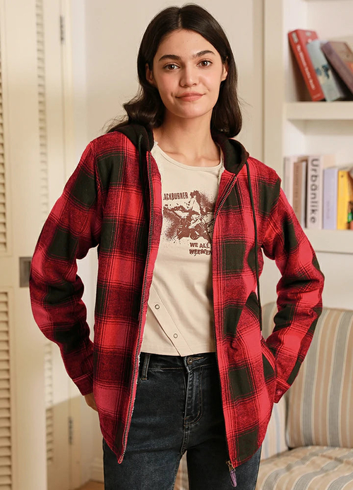 In summary, the Women's Matching Family Red Sherpa-Lined Flannel Hoodie is a fantastic addition to any wardrobe. With its cozy sherpa lining, stylish design, and family matching options, it’s perfect for those who value comfort and style. Whether you’re embarking on an outdoor adventure or enjoying a quiet evening at home, this hoodie will keep you warm and fashionable.