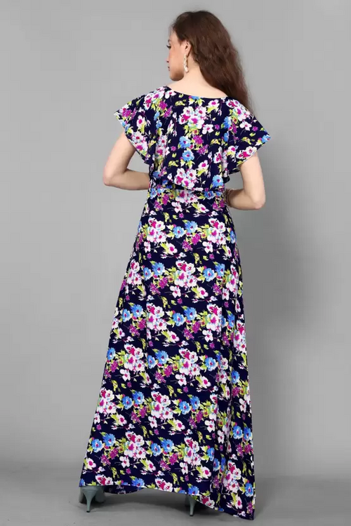 Dropship Women's Printed Crepe Stitched Anarkali Gown (Multicolor) (Size L)