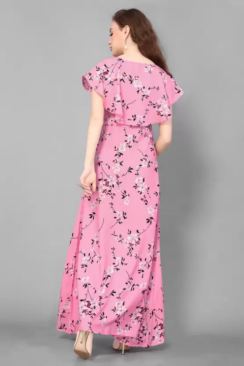 Dropship Women's Printed Crepe Stitched Anarkali Gown (Pink) (Size XL)