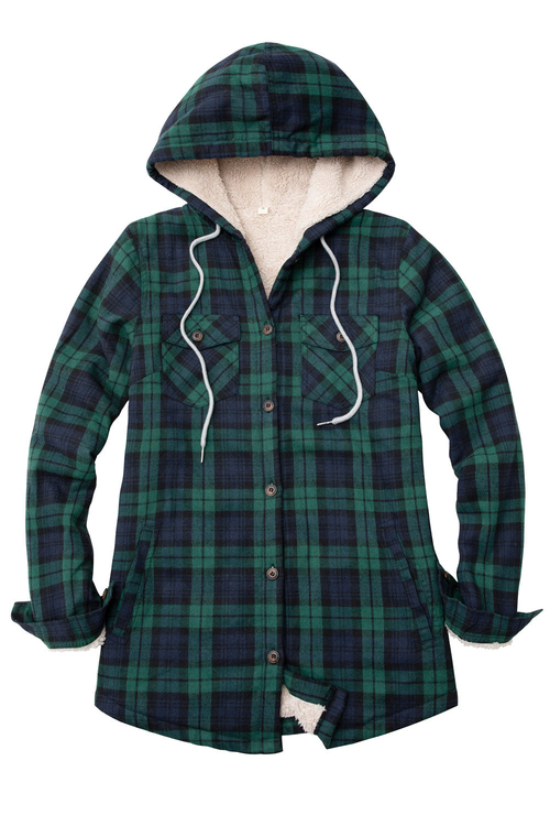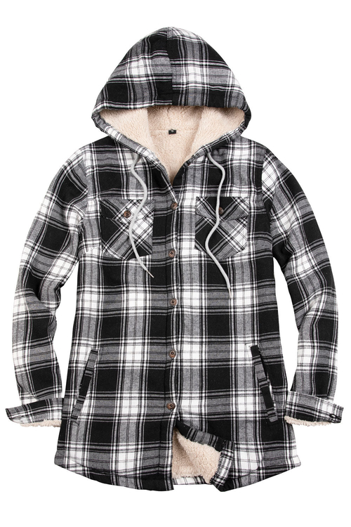 In summary, our Women's Sherpa Lined Flannel Jacket with Hood is the ultimate cold-weather companion. With its stylish design, exceptional warmth, and practical features, it's a must-have for any woman who values both fashion and function. Don't let the cold weather hold you back—embrace it in style!