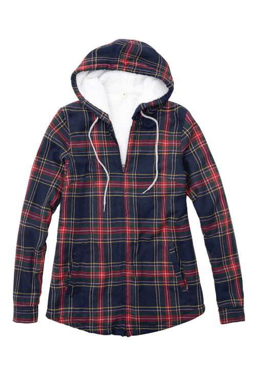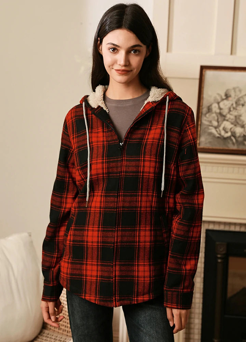 In summary, the Women's Sherpa-Lined Flannel Jacket Full Zip Up Hooded Plaid Shirt is a must-have for any woman looking to combine style and functionality. With its cozy sherpa lining, adjustable hood, and practical pockets, this jacket is perfect for a variety of activities and occasions. Don't miss out on the chance to add this versatile piece to your wardrobe!