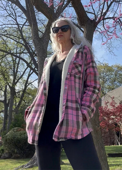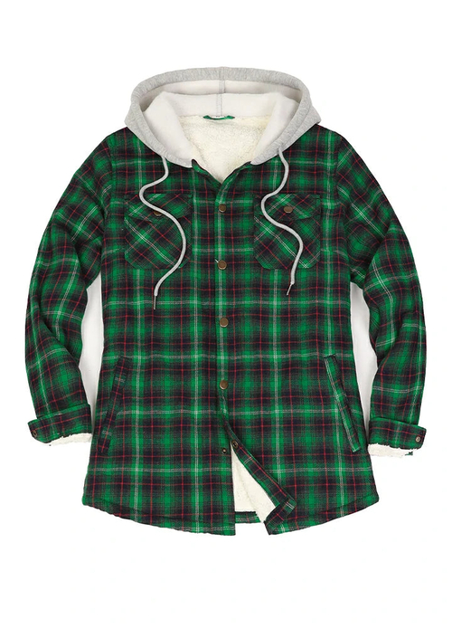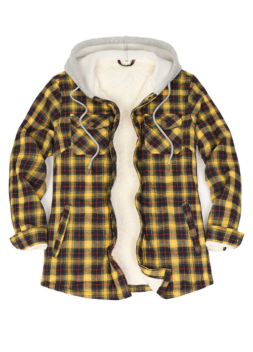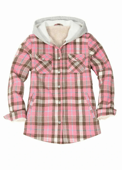 Introducing the Women's Sherpa-Lined Snap Button Flannel Jacket with Fleece Hood, the perfect blend of style and functionality for the colder months. This jacket is designed to keep you warm while ensuring you look fashionable. The Sherpa lining provides exceptional insulation, making it an ideal choice for chilly days.