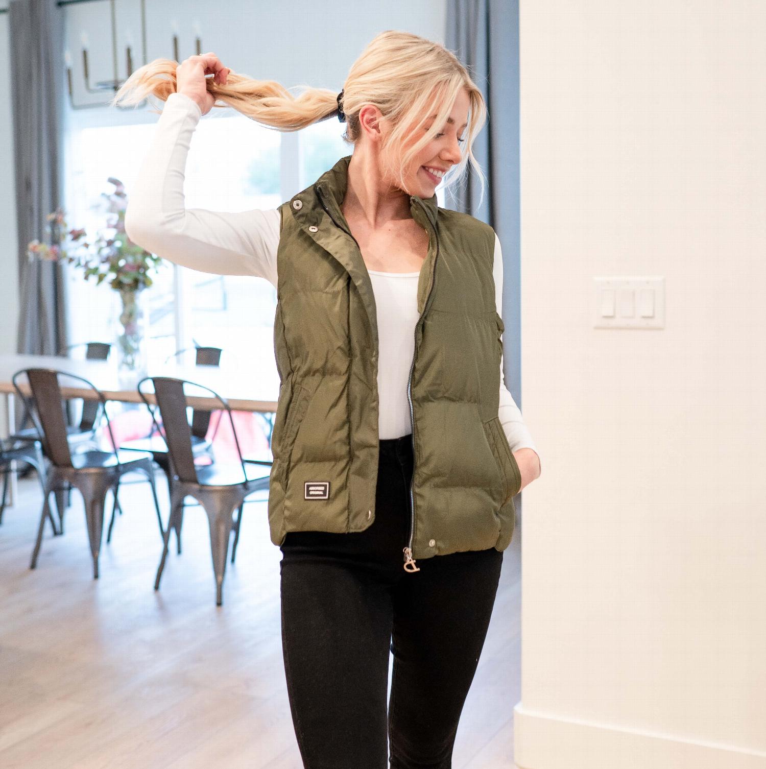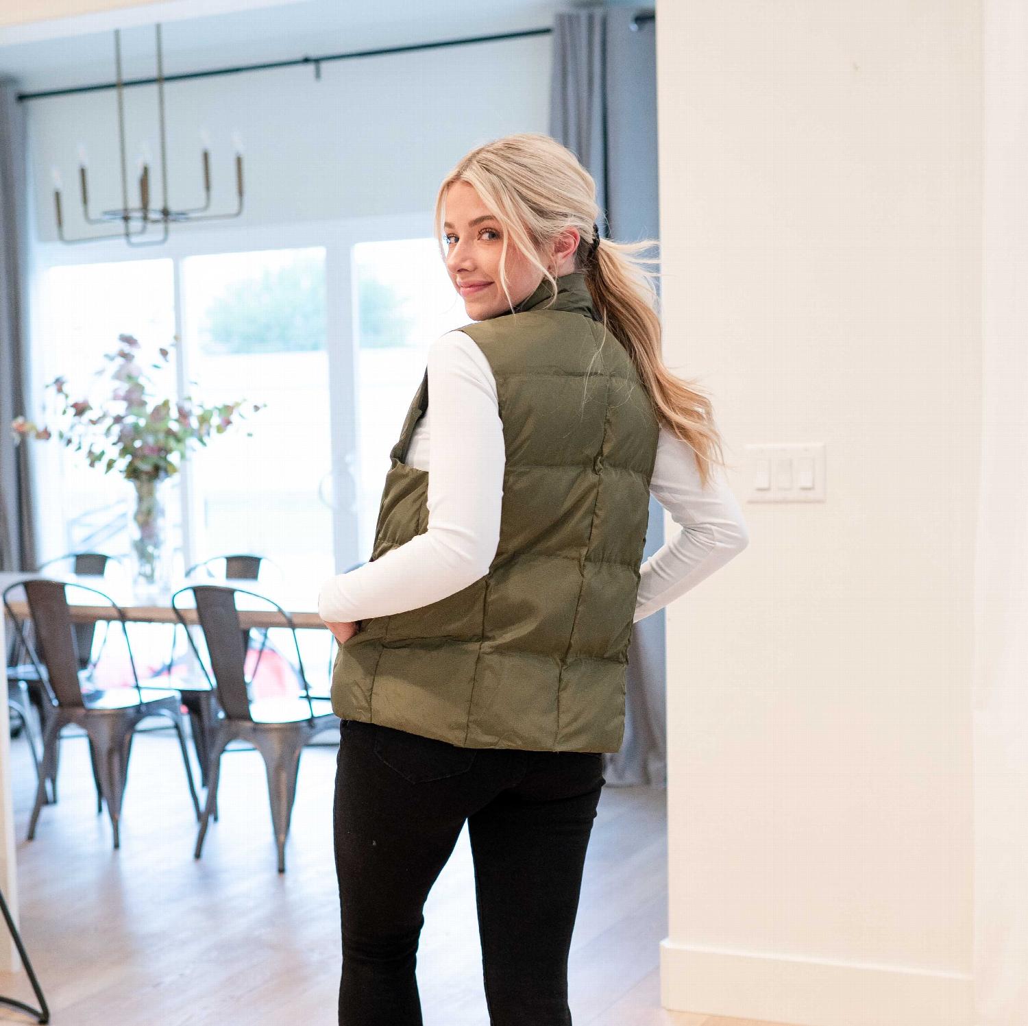 In summary, the Women's Solid Puffer Jacket Vest is the perfect combination of style, comfort, and practicality. Whether you're layering it for warmth or wearing it as a standalone piece, this vest is sure to keep you cozy and fashionable throughout the winter season.