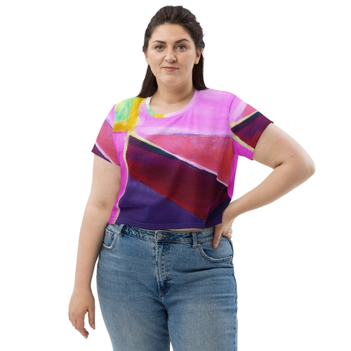 In summary, the Womens Stretch Fit Crop Tee T-shirt Jersey in pink and purple pattern is a must-have for any fashion-forward individual. Its combination of comfort, style, and durability makes it an essential piece for your casual wardrobe. Don't miss out on the opportunity to enhance your style with this versatile crop tee!