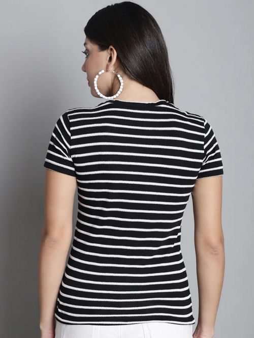 Elevate your casual look with the Women’s Striped V Neck T-Shirt, a stylish and versatile piece that adds a fresh twist to your everyday wardrobe. This tee features a classic V-neckline and a chic striped pattern that creates a visually appealing and flattering effect. The stripes add a touch of contemporary style while the V-neckline enhances your silhouette with a sleek and elongated look.