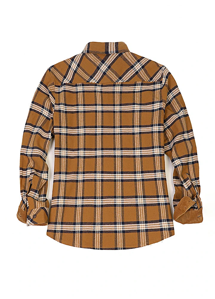 The Women's Timberline Flannel Shirt features a classic long sleeve design that never goes out of style. The button-up front adds a touch of sophistication, while the corduroy trim inside the collar and around the cuffs elevates the overall look. This thoughtful detailing not only enhances the aesthetic appeal but also adds an extra layer of comfort.