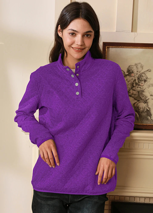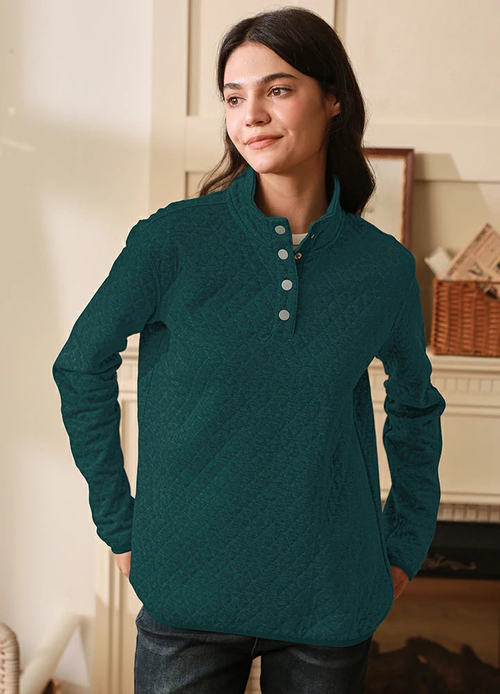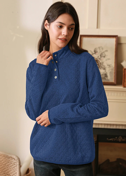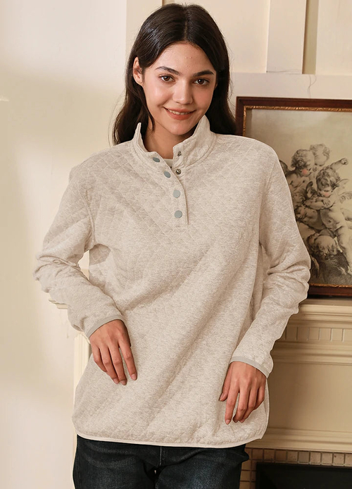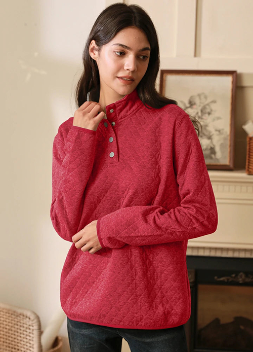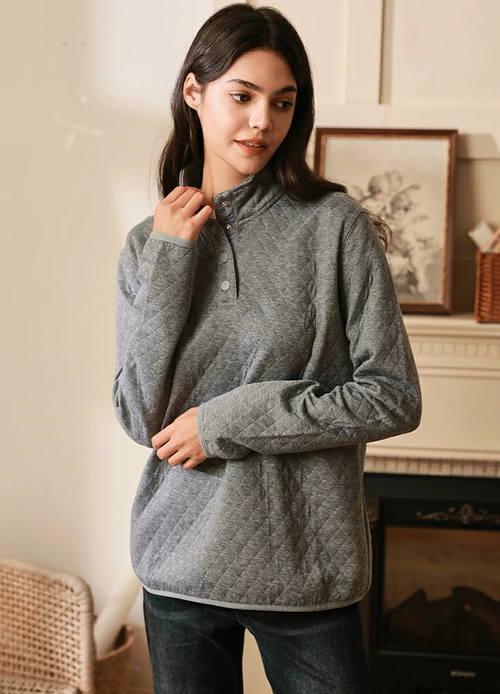 Crafted from ultra-soft quilted fleece, this pullover feels gentle against your skin, providing a luxurious wearing experience. The lightweight fabric ensures that you can wear it all day long without feeling weighed down. The thermal properties of the fleece keep you warm during chilly outings, making it ideal for fall and winter wear.