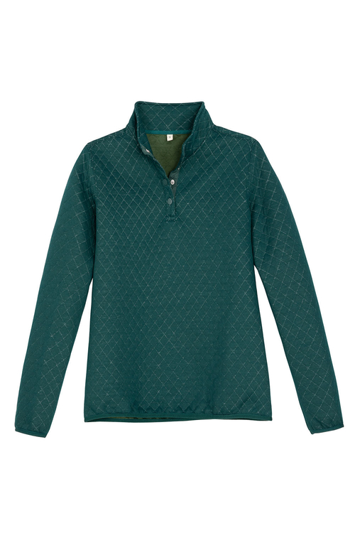 The Women's Ultra Soft 1/4 Quilted Fleece Pullover features snap buttons that add a touch of effortless style while allowing for easy on and off. This functional design element not only enhances the aesthetic appeal but also provides versatility in how you wear it. You can adjust the neckline to your preference, making it suitable for various weather conditions.