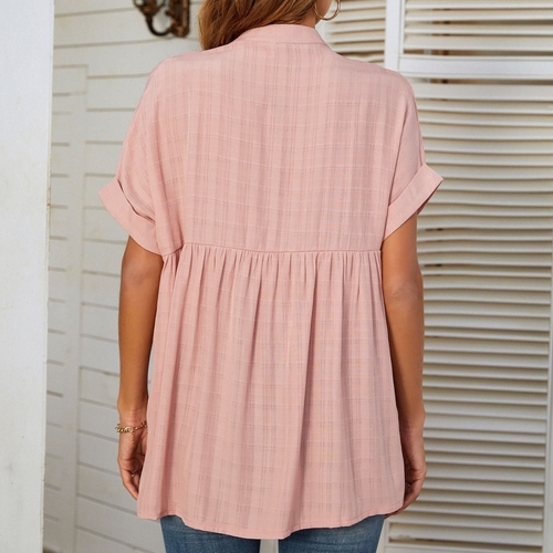 At our store, we prioritize quality and customer satisfaction. Our clothing is designed with the latest trends in mind while ensuring comfort and durability. When you choose our Women's V-Neck Short Sleeve Solid Color Thin Loose Check Shirt, you're investing in a piece that will become a staple in your wardrobe for years to come.