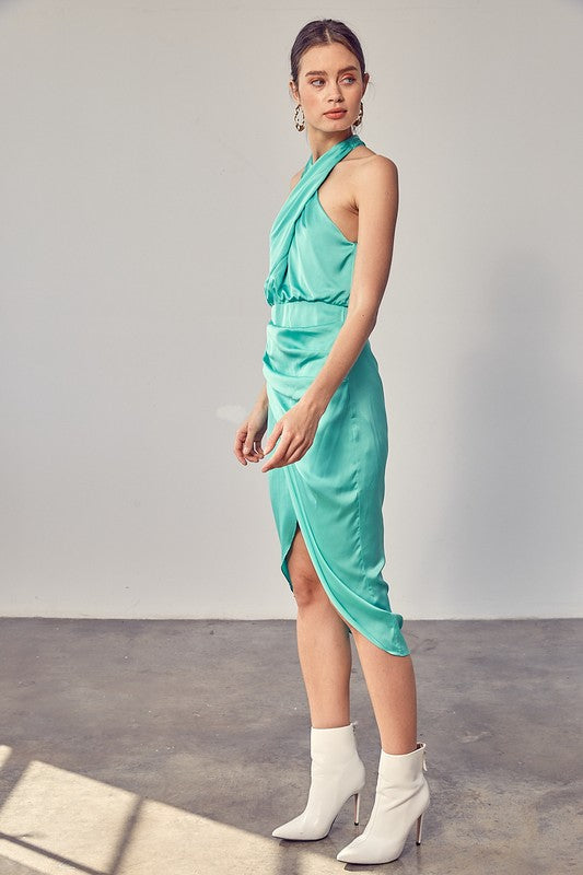 The Wrap Cross Neck Dress is a must-have addition to any fashion-forward wardrobe. This sophisticated dress features a wrap-style design that cinches at the waist, creating a stunning hourglass silhouette that flatters all body types. The elegant cross neck detail adds a touch of sophistication, making it suitable for both casual outings and more formal events. Whether you're attending a wedding, going out for brunch, or enjoying a night out on the town, this dress is versatile enough to meet all your style needs.