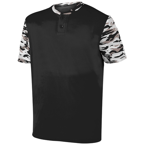 100% polyester wicking knit body * 100% polyester wicking printed knit collar and sleeves * Wicks moisture * Tagless label * Two-button placket * Set-in sleeves