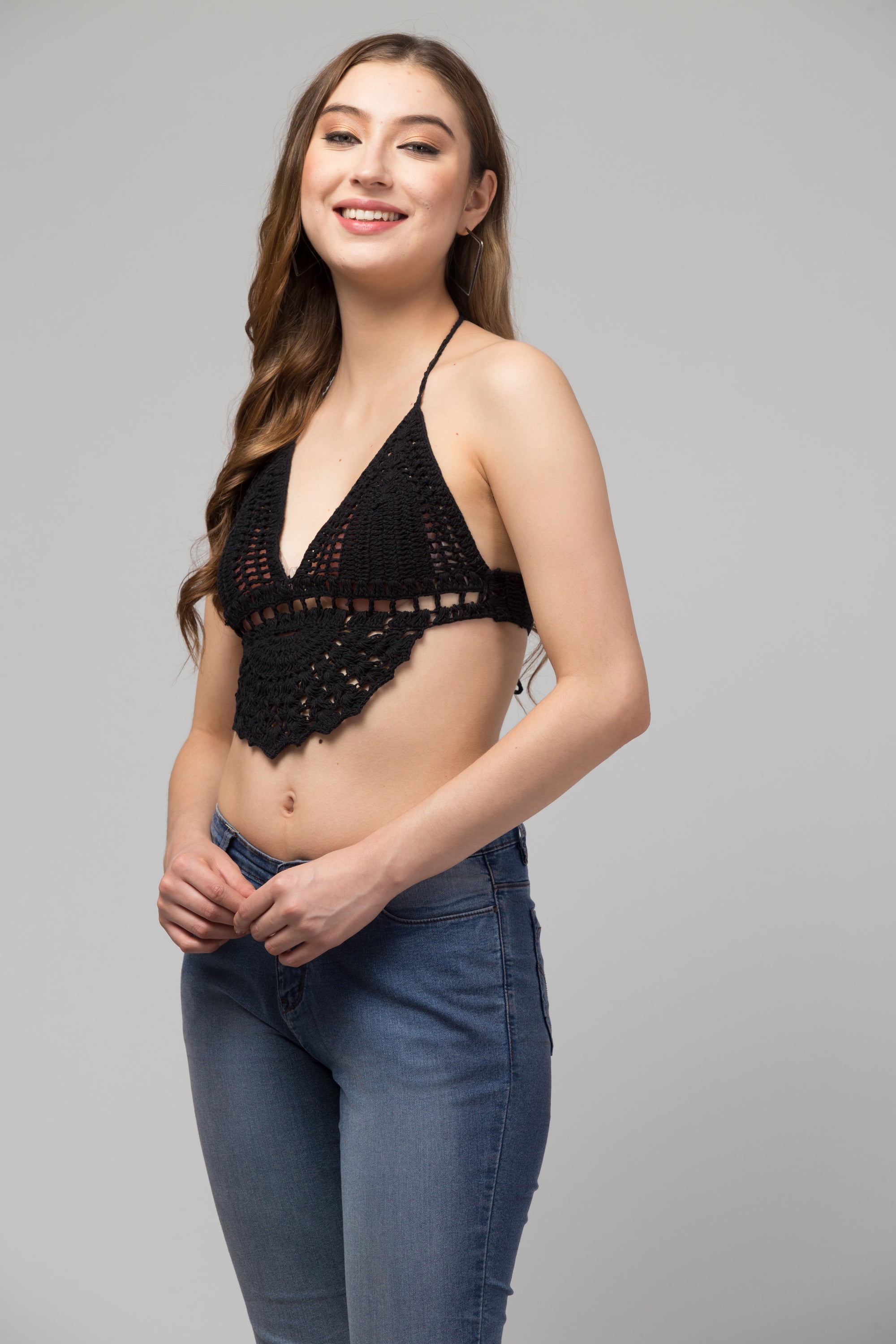 The Zoe Black Crochet Crop Top-Bralette is available for purchase on our website. We offer a range of sizes to ensure the perfect fit for everyone. Don't miss out on this stylish and sustainable addition to your summer wardrobe. Shop now and embrace the chic look that the Zoe Black Crochet Crop Top-Bralette offers!