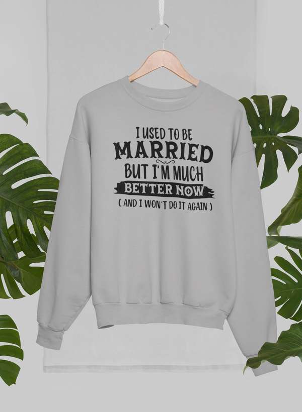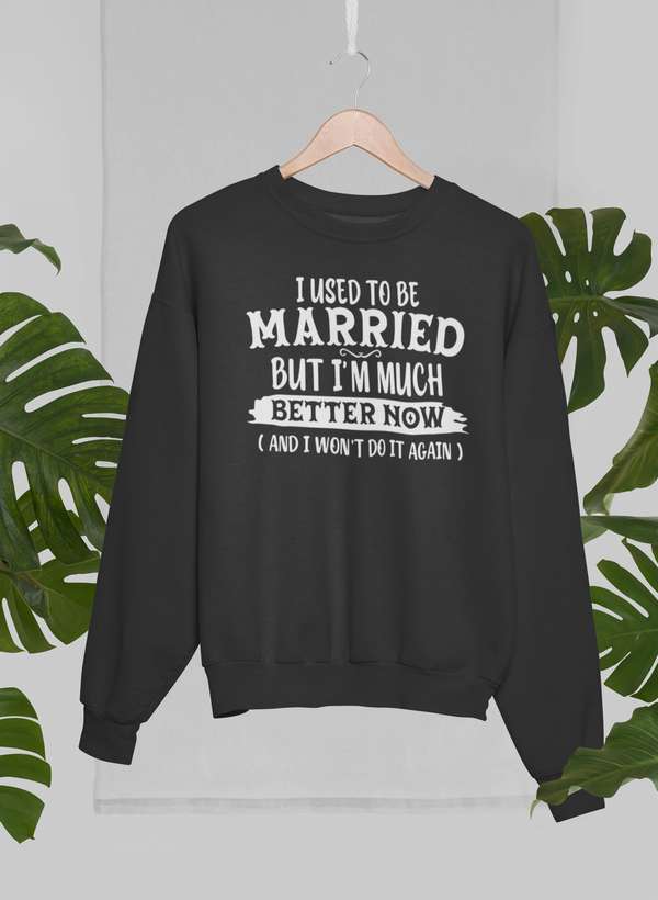 With the unique design of 'I Used To Be Married But I'm Much Better Now', you can showcase your personality while enjoying the comfort of our sweats. Pair them with your favorite jeans or wear them as loungewear at home. The stylish design makes them suitable for various occasions, from casual outings to cozy nights in.