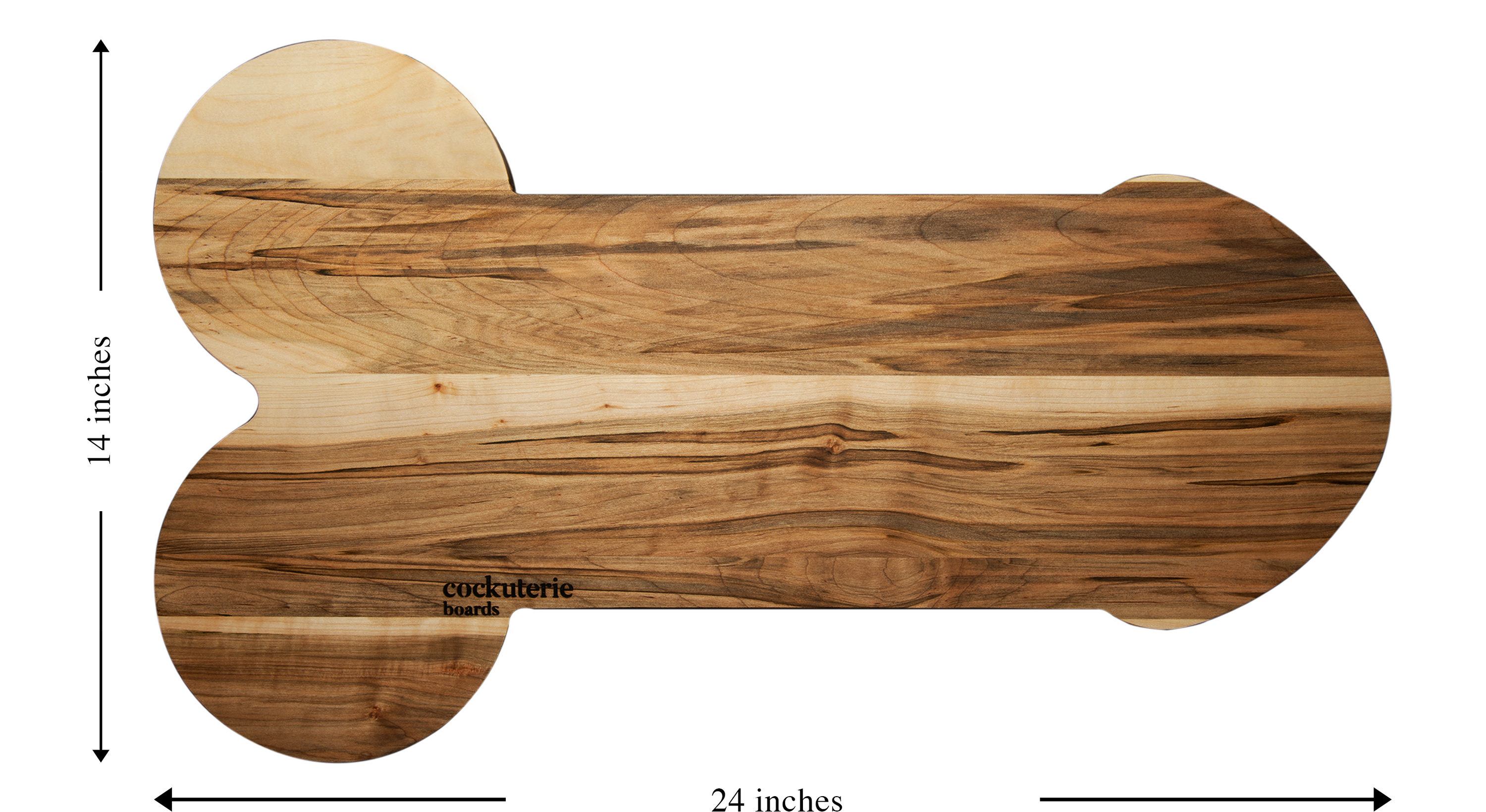 Introducing the Cockuterie Board, a unique and playful addition to your party essentials. Made from locally sourced, rock-hard Canadian Maple, this board is designed to withstand the test of time while adding a touch of humor to your gatherings. Each board is meticulously treated with a 100% food-grade coating, ensuring that it is safe for food presentation and consumption. The hand-rubbed, oiled, and finished surface not only enhances the natural beauty of the wood but also provides a smooth and durable surface for all your culinary creations.