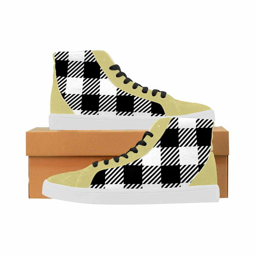 Dropship Sneakers For Women, Buffalo Plaid Black And White - High Top Sports
