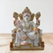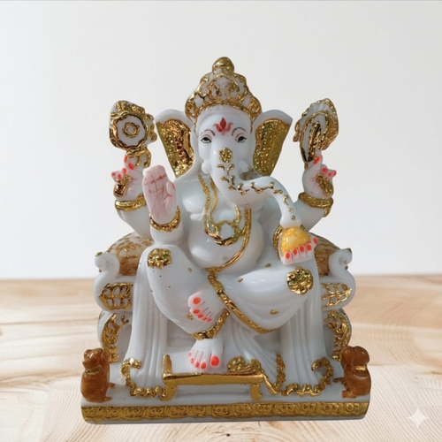 Intricately crafted Lord Ganesha statue featuring a pristine white base with rich golden accents. Seated on a detailed throne, this idol showcases symbolic elements like the lotus and modak, with red highlights on hands and feet. Ideal for home décor, gifting, or spiritual spaces. Made for full-frame Amazon display with HD clarity and vibrant contrast.