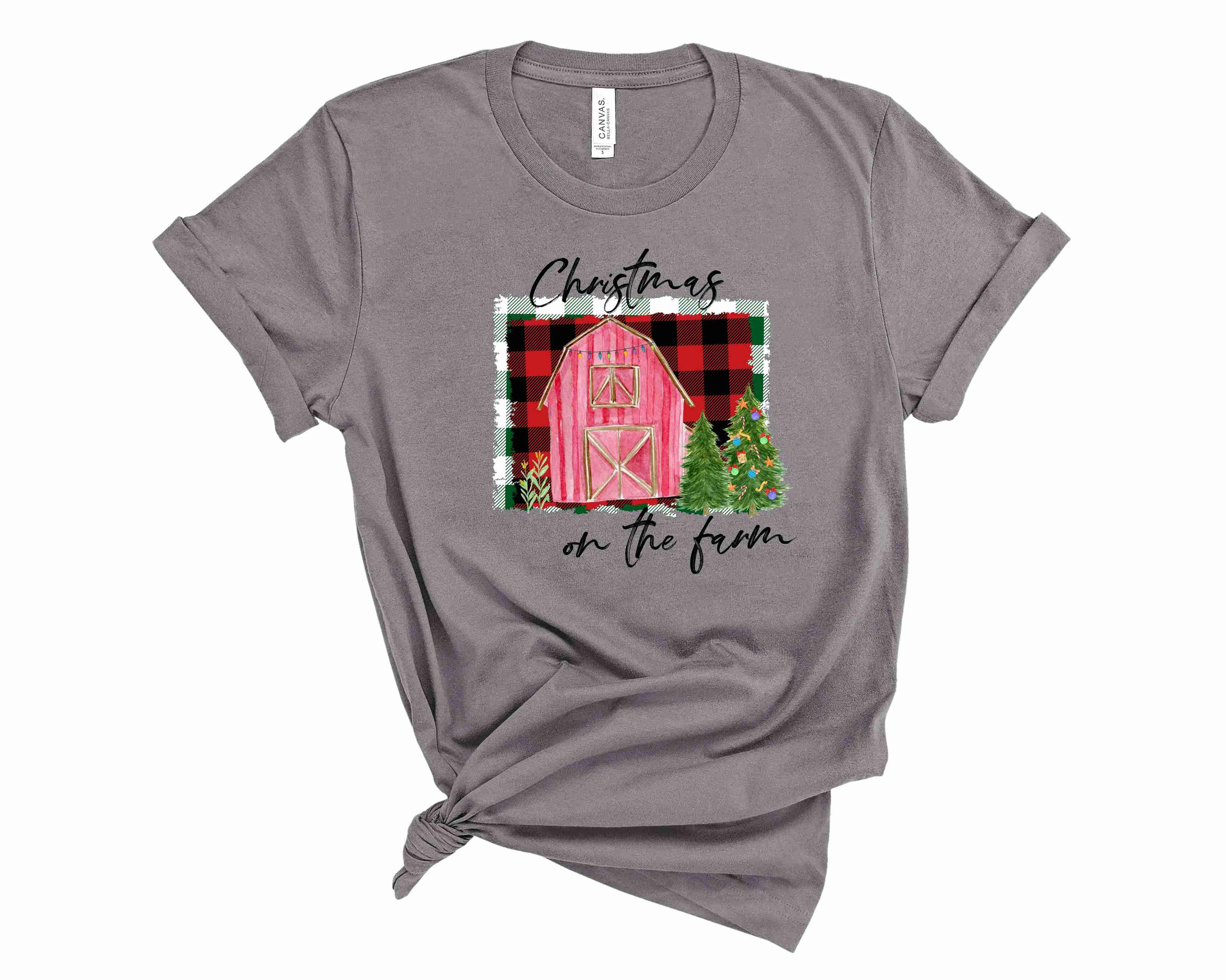 Embrace the joy of the holiday season with our Christmas on the Farm graphic tee. It's more than just a t-shirt; it's a celebration of the spirit of Christmas. Wear it proudly as you join in the festivities, create lasting memories, and enjoy the company of loved ones. This tee is a reminder of the warmth and joy that the holiday season brings.