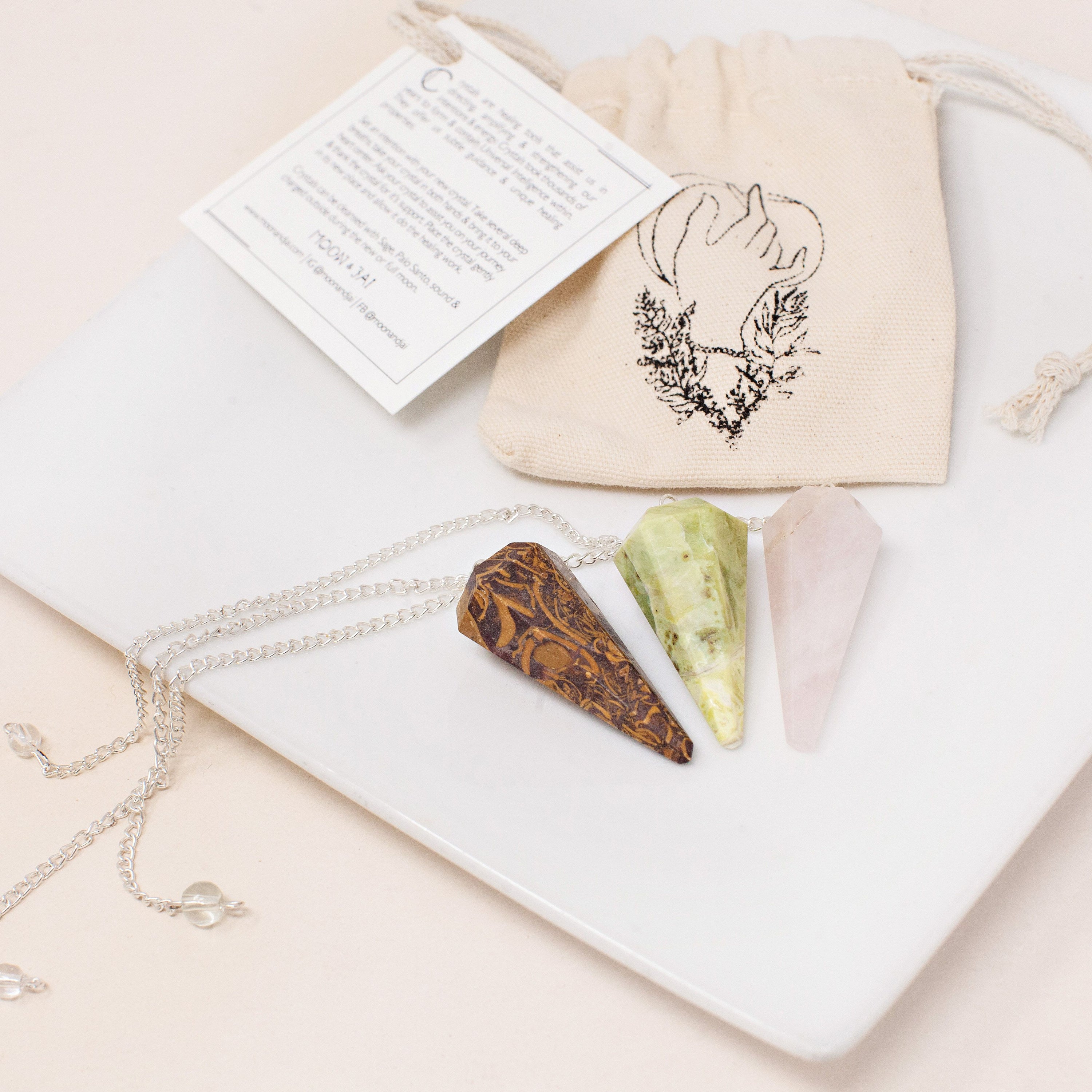 Each Pendulum - Surprise comes beautifully packaged in a branded Moon and Jai pouch, making it an ideal gift for yourself or a loved one. The pouch not only protects your pendulum but also adds a touch of elegance to your spiritual tools. Inside, you will find detailed instructions on how to use your pendulum effectively, ensuring that you can start your journey right away.