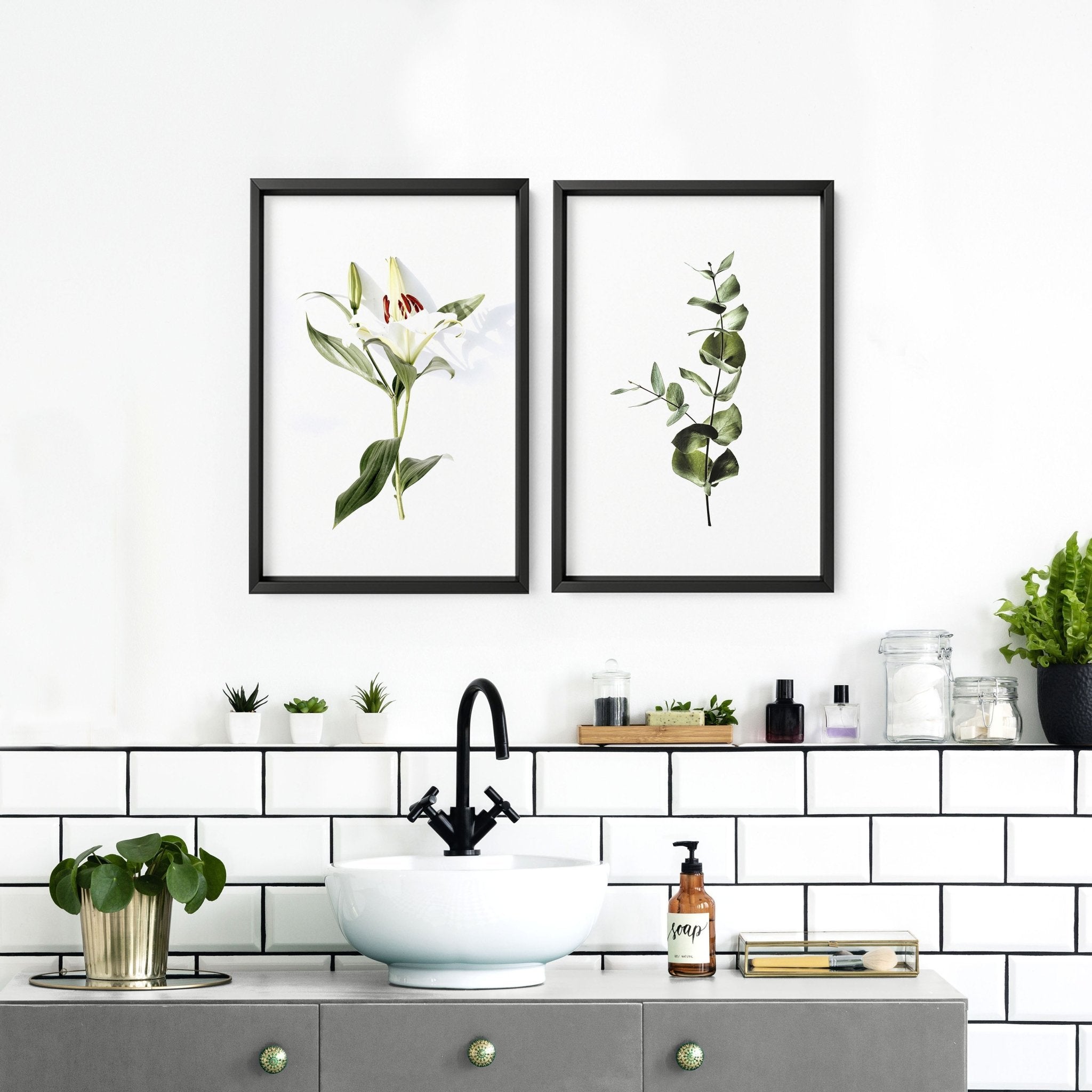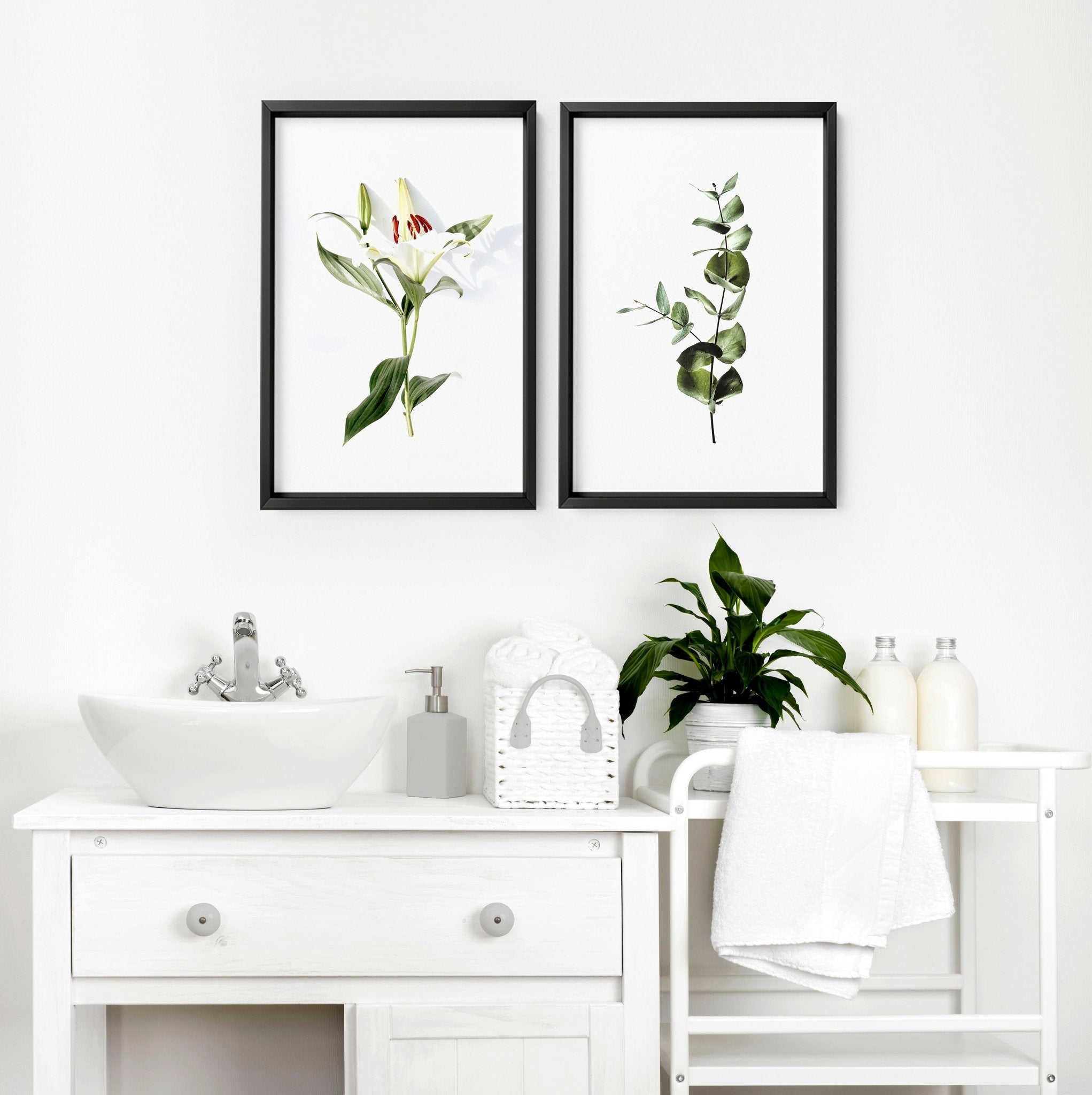 To make your decorating process as effortless as possible, we offer these art prints with sleek white or black frames. This option saves you the hassle of searching for the perfect frames, allowing you to achieve a polished and cohesive look in your bathroom decor. The frames enhance the overall presentation of the prints, making them a focal point in your space.