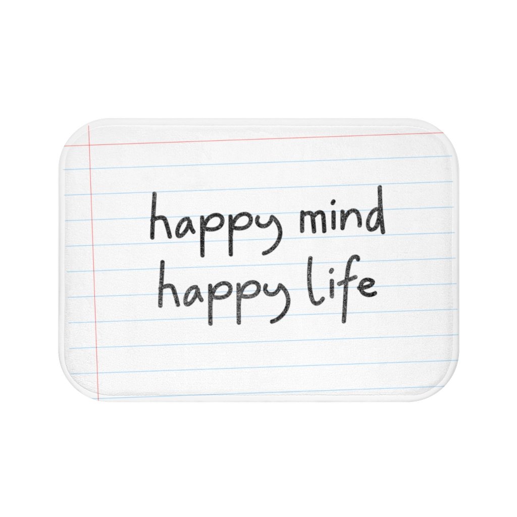 The Happy Mind, Happy Life Pencil Font Bath Mat is the perfect addition to your bathroom decor, combining both style and functionality. Made from 100% microfiber, this bath mat offers a soft and comfortable surface for your feet, making it an ideal choice for stepping out of the shower or bath. The unique pencil font design adds a touch of personality and positivity to your space, reminding you to maintain a happy mindset every day. With dimensions of 24" x 17", this bath mat fits perfectly in front of sinks, tubs, or showers, providing a cozy spot to land your feet. One of the standout features of this bath mat is its anti-slip backing, which ensures that it stays securely in place, reducing the risk of slips and falls in the bathroom. This is especially important in a wet environment where safety is a priority. The binding around the edges not only enhances the durability of the mat but also gives it a polished look, making it a stylish addition to your bathroom decor. Whether you are redecorating your bathroom or simply looking for a practical yet chic bath mat, the Happy Mind, Happy Life Pencil Font Bath Mat is an excellent choice. It is easy to clean and maintain, ensuring that it remains looking fresh and vibrant for years to come. This bath mat is not just a functional item; it is a statement piece that reflects your personality and values. The cheerful message of 'Happy Mind, Happy Life' serves as a daily reminder to embrace positivity and joy in your life. This bath mat is suitable for various bathroom styles, from modern to traditional, and can complement a wide range of color schemes. It also makes a thoughtful gift for friends or family members who appreciate unique home decor items. In addition to its aesthetic appeal, the bath mat's practical features make it a must-have for any bathroom. The microfiber material is not only soft but also quick-drying, helping to keep your bathroom clean and free from excess moisture. This is particularly beneficial in preventing mold and mildew growth, which can be a concern in humid environments. The mat's lightweight design allows for easy handling and repositioning, making it convenient to wash or move as needed. When it comes to home essentials, the Happy Mind, Happy Life Pencil Font Bath Mat stands out as a versatile and stylish option that enhances both the look and safety of your bathroom. Its combination of comfort, durability, and a positive message makes it a unique product that you will love to use every day. Upgrade your bathroom experience with this delightful bath mat that not only serves a practical purpose but also uplifts your spirits. With its charming design and functional features, this bath mat is sure to become a favorite in your home. Don't miss out on the opportunity to add a touch of happiness to your daily routine with the Happy Mind, Happy Life Pencil Font Bath Mat.
