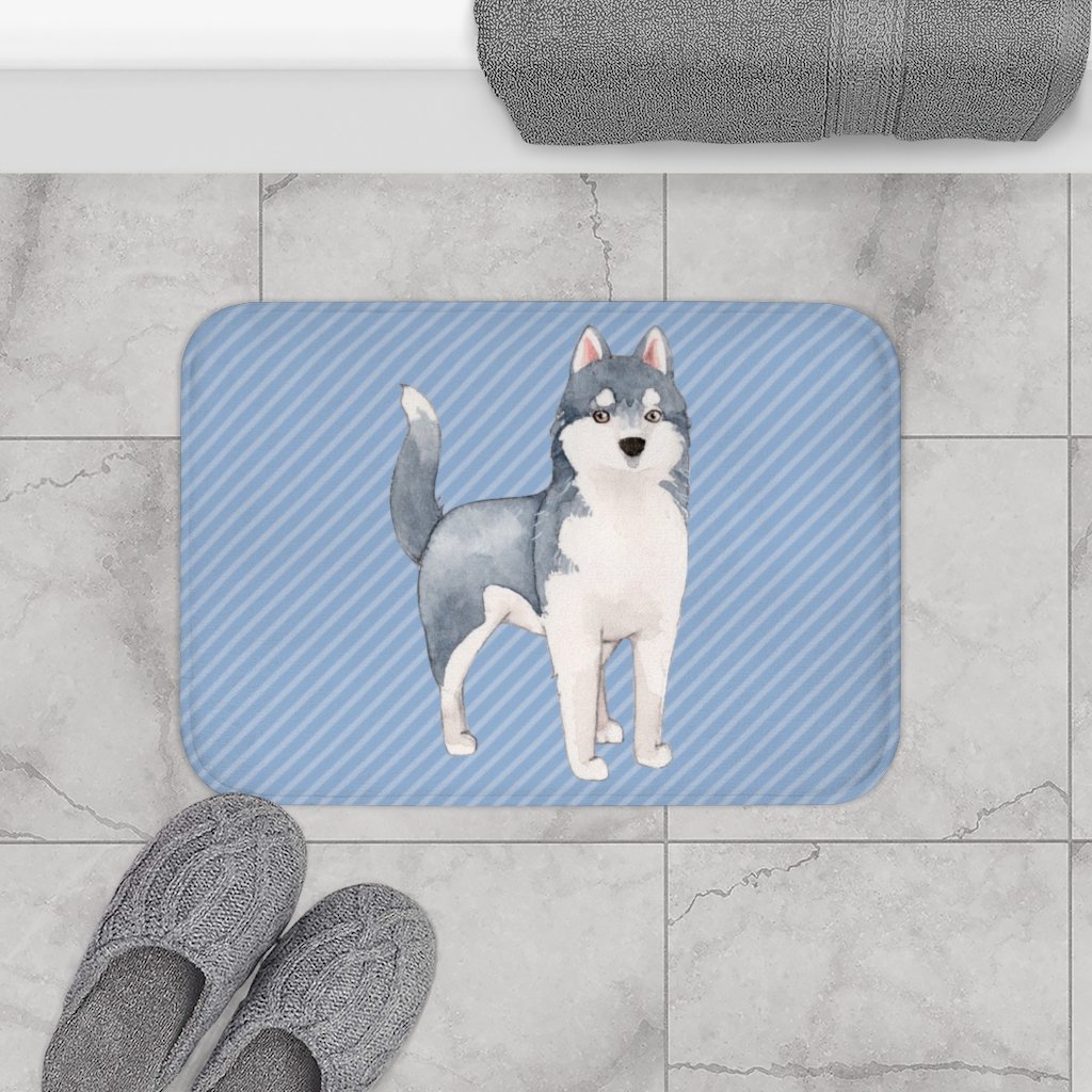 Transform your bathroom into a cozy retreat with the Siberian Husky Blue Bath Mat. This unique bath mat not only adds a touch of personality to your space but also provides practical benefits that enhance your daily routine. Made from 100% microfiber, this bath mat is incredibly soft and comfortable underfoot, making it a perfect addition to your bathroom decor. The vibrant blue color and adorable Siberian Husky design make it a standout piece that will impress your guests and bring a smile to your face every time you step out of the shower. One of the key features of this bath mat is its anti-slip backing, which ensures that it stays firmly in place, reducing the risk of slipping and falling on wet surfaces. This is especially important in a bathroom where safety is a top priority. The anti-slip feature allows you to enjoy your bath mat without worrying about accidents, making it a practical choice for families with children or elderly individuals. In addition to its safety features, the Siberian Husky Blue Bath Mat is designed with durability in mind. The edges are bound to prevent fraying and ensure that the mat maintains its shape and appearance over time. This means you can enjoy the beauty and functionality of your bath mat for years to come. Measuring 24 inches by 17 inches, this bath mat is the perfect size for any bathroom. Whether you have a small powder room or a spacious master bath, it fits seamlessly into your space without overwhelming the decor. The size is also ideal for placing in front of sinks, tubs, or showers, providing a soft landing spot for your feet. Cleaning and maintaining the Siberian Husky Blue Bath Mat is a breeze. The microfiber material is easy to wash and dries quickly, ensuring that your bath mat stays fresh and clean with minimal effort. Simply toss it in the washing machine when it needs a refresh, and it will come out looking as good as new. This bath mat is not just a functional item; it is also a stylish accessory that reflects your personality and love for dogs. The Siberian Husky design is perfect for dog lovers and adds a playful touch to your bathroom decor. It can easily complement various design styles, from modern to rustic, making it a versatile choice for any home. In summary, the Siberian Husky Blue Bath Mat is a must-have for anyone looking to enhance their bathroom experience. With its combination of style, comfort, and safety features, it is the perfect addition to your home. Whether you are treating yourself or looking for a thoughtful gift for a fellow dog lover, this bath mat is sure to impress. Don't miss out on the opportunity to bring a touch of charm and practicality to your bathroom with this delightful bath mat.