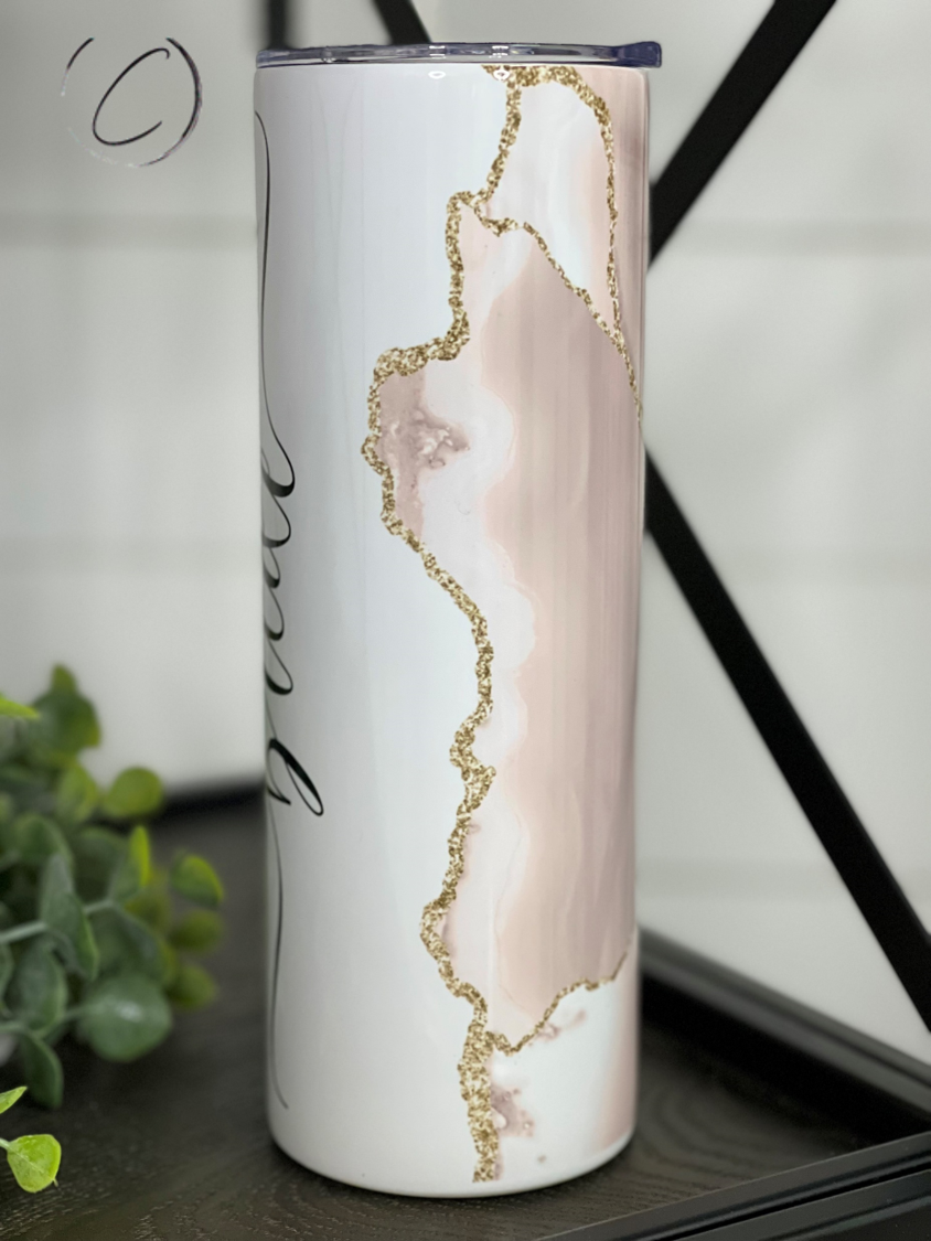 In summary, the Bride Blush Geode 20oz Skinny Tumbler is a stylish, durable, and functional choice for anyone looking to elevate their hydration game. Whether you're treating yourself or gifting it to someone special, this tumbler is sure to impress with its beautiful design and practical features.