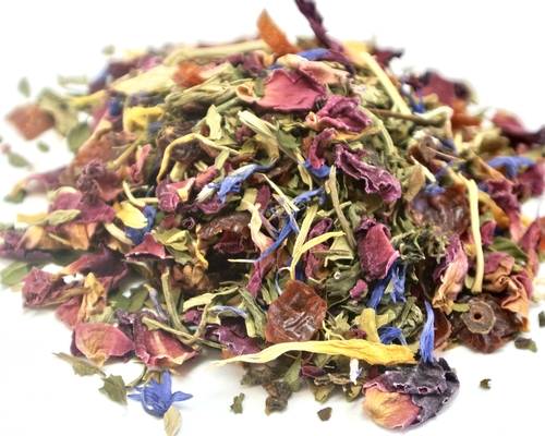* PEPPERMINT FLORAL- refreshing mint is blended with sweet rose hips, passion flower, and rose, cornflower, and calendula petals for a bright and flowery tea.