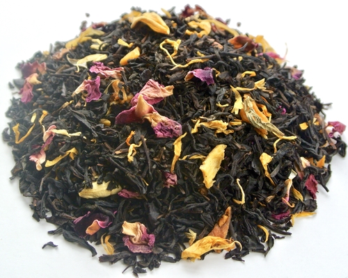 * MANGO ROSE- mango and rose petals are blended with large leaf black tea for a sweet treat that is rich and flavorful; black tea.
