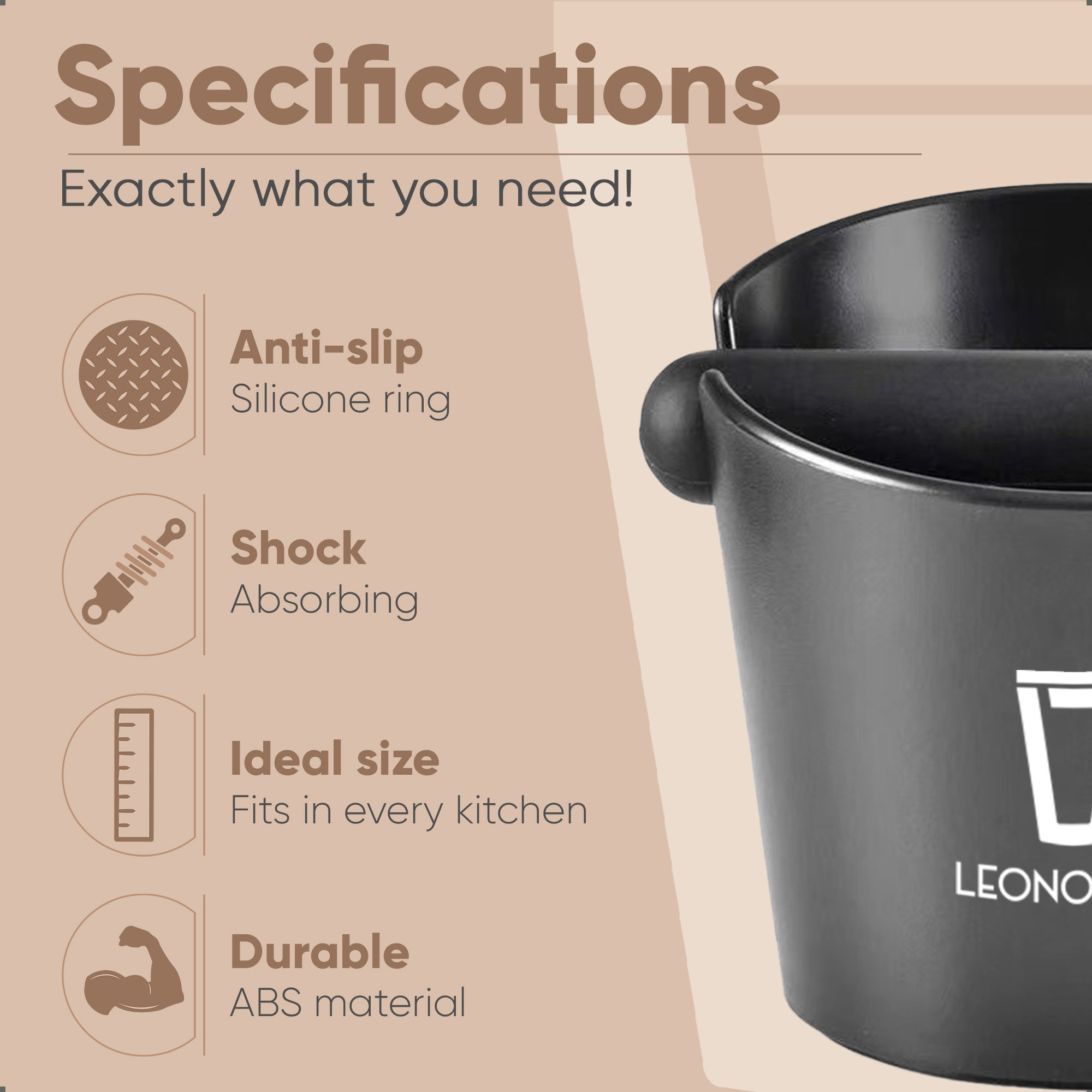 The Leonomics Knock Box - 1L is an essential tool for any serious barista. Designed to enhance your coffee-making experience, this knock box is not just a functional accessory but also a stylish addition to your workstation. Made from high-quality ABS plastic, it offers durability and longevity, ensuring that it withstands the rigors of daily use in a busy café or home environment.