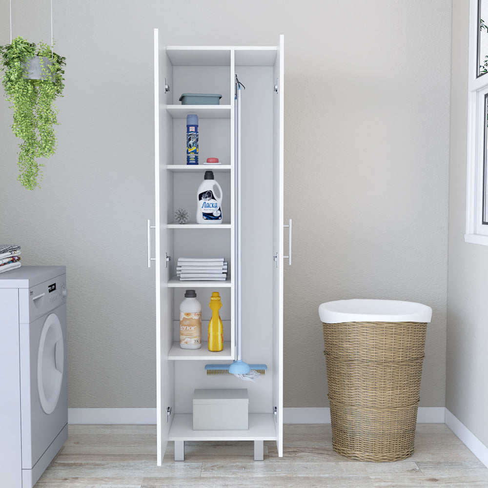 Crafted from high-quality manufactured wood, the Copenhague Closet Pantry boasts a beautiful white finish that adds a touch of elegance to your space. Its sturdy construction ensures that it can withstand daily use while maintaining its aesthetic appeal. The tall frame not only maximizes vertical space but also provides a modern look that fits seamlessly into any room.