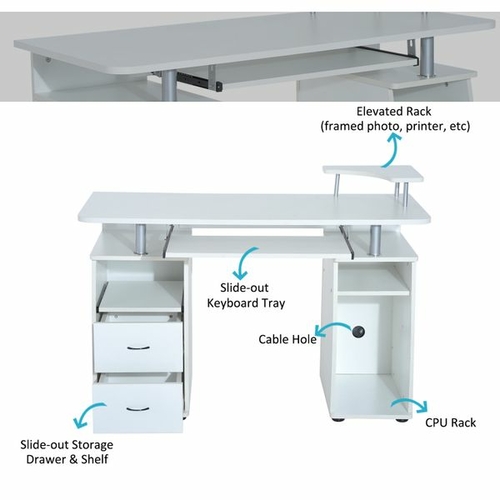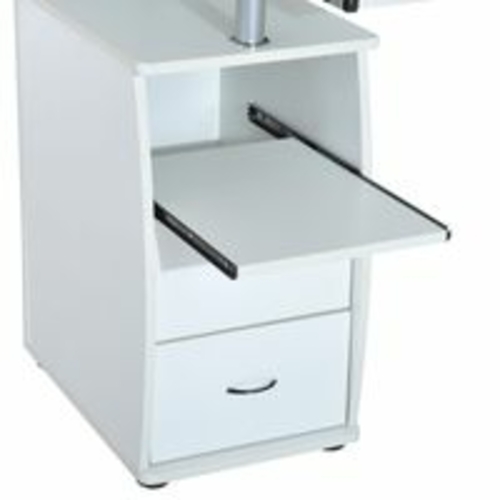 ● Elevated shelf for printer or telephone and smooth slide out tray for keyboard and mouse