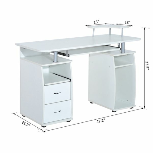 HOMCOM Computer Table Desk PC Desktop Drawer Home Office Furniture White