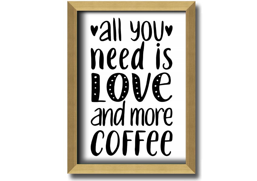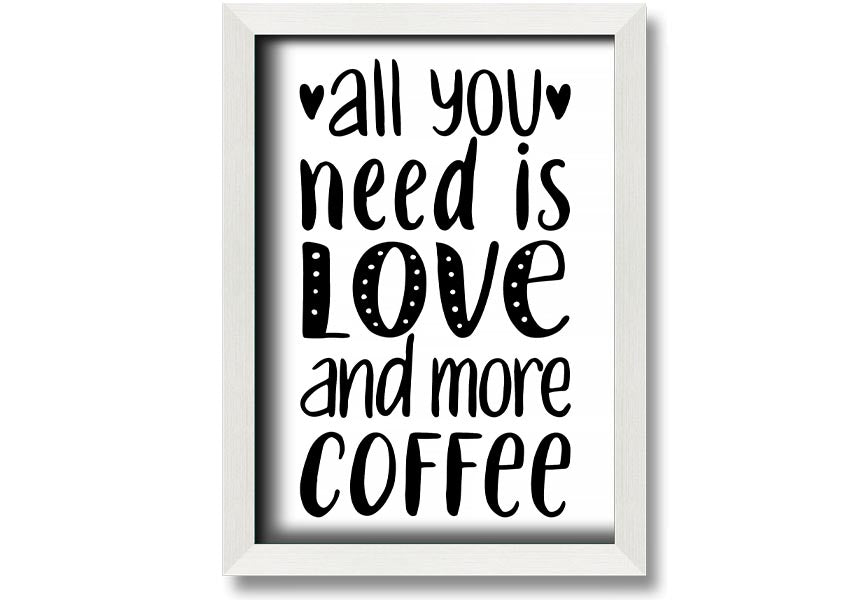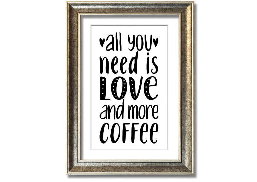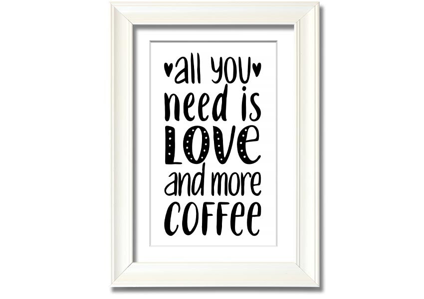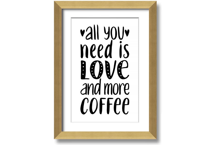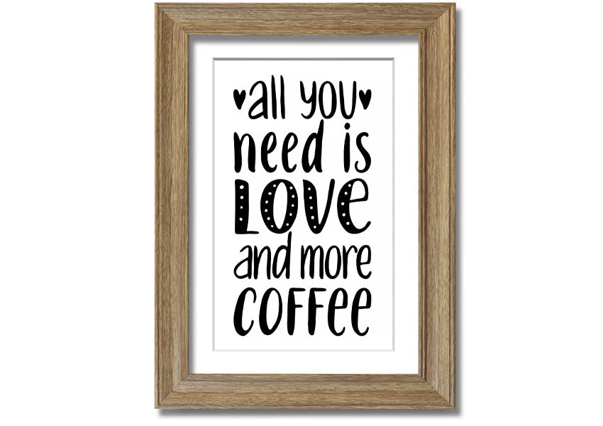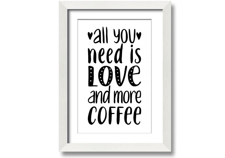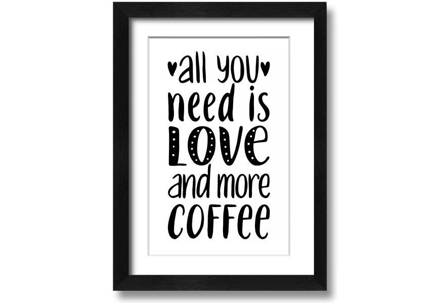 In summary, the All You Need Is Love Coffee 2 framed print is a beautiful, handmade piece of art that celebrates the love of coffee. With its quality craftsmanship, multiple frame options, and ready-to-hang feature, it is the perfect addition to any home or a thoughtful gift for someone special.