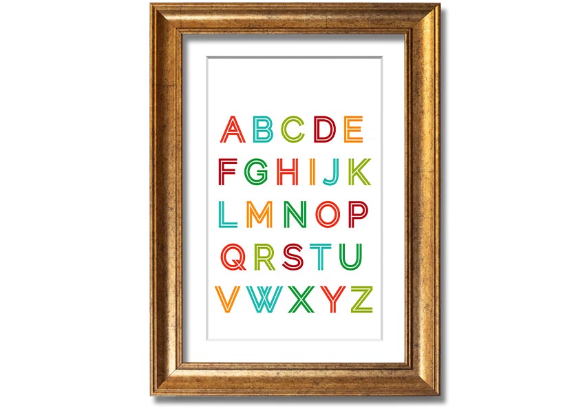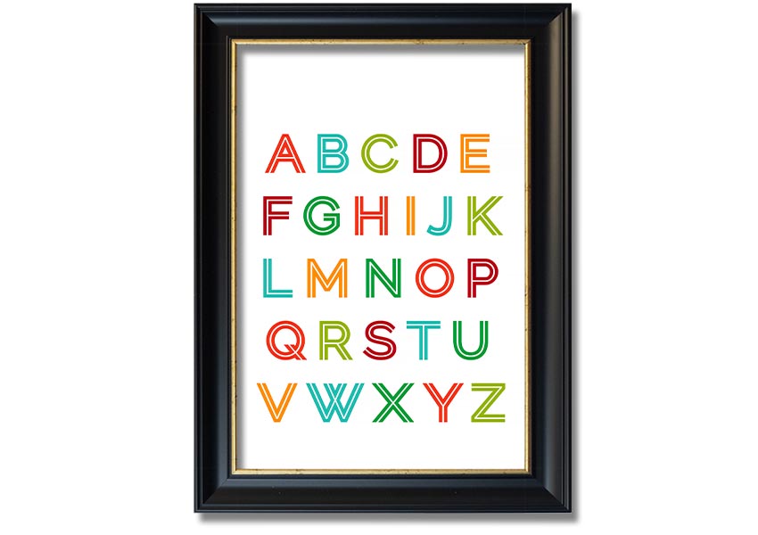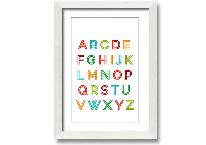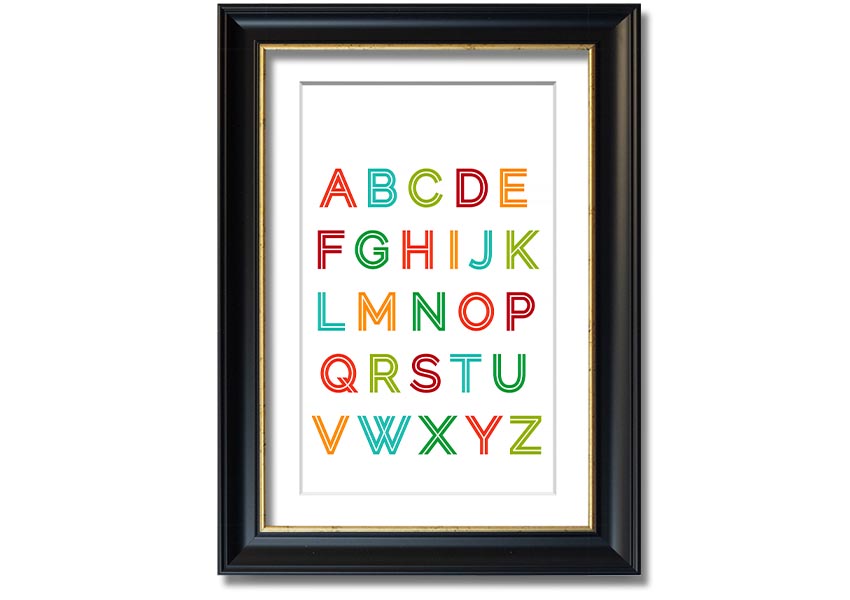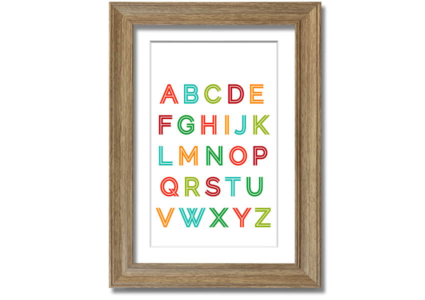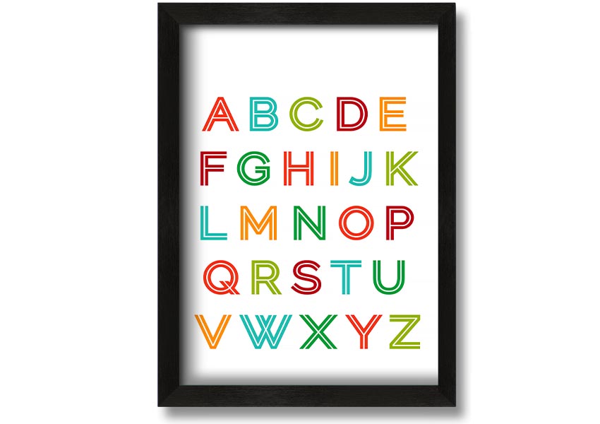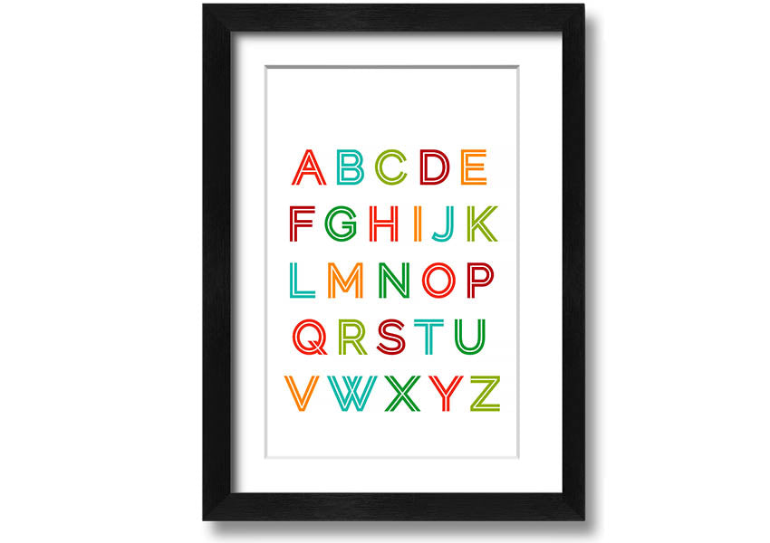 This framed print is an ideal choice for children's rooms, playrooms, or educational spaces. The colorful design not only brightens up the room but also encourages learning and engagement with the alphabet. Parents and educators alike will appreciate the dual purpose of this artwork, as it serves as both a decorative piece and a learning tool.