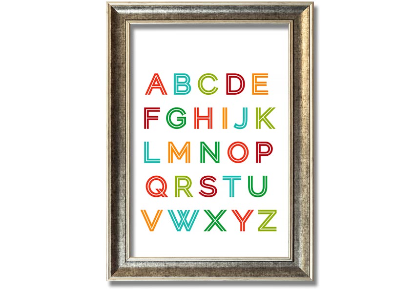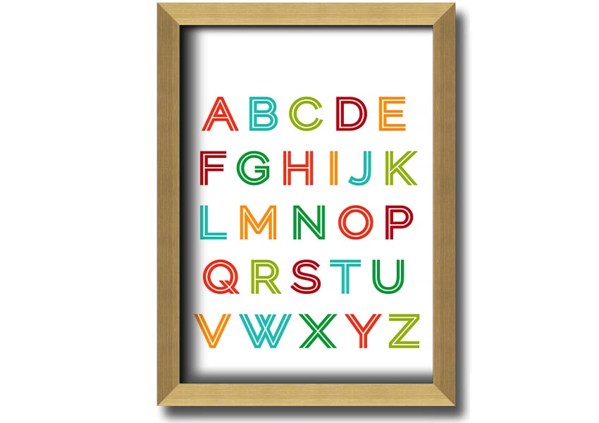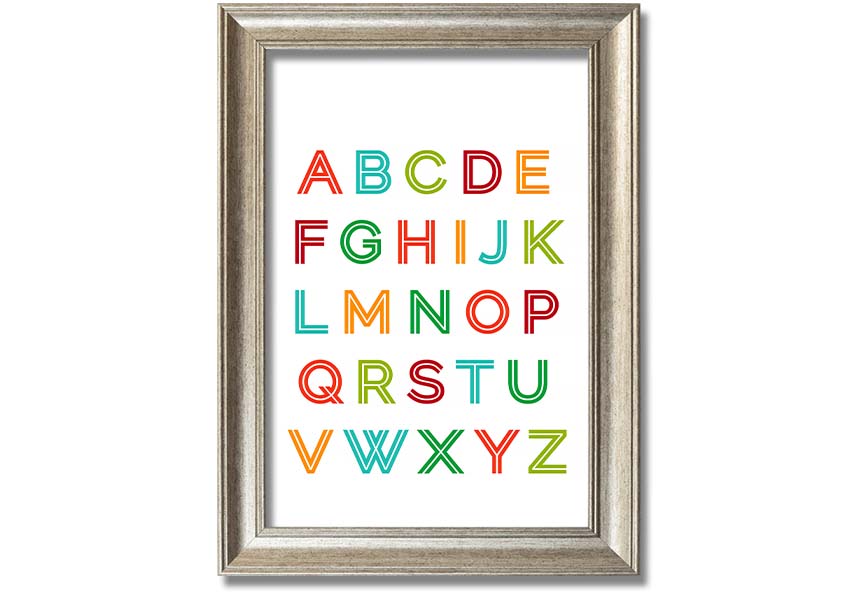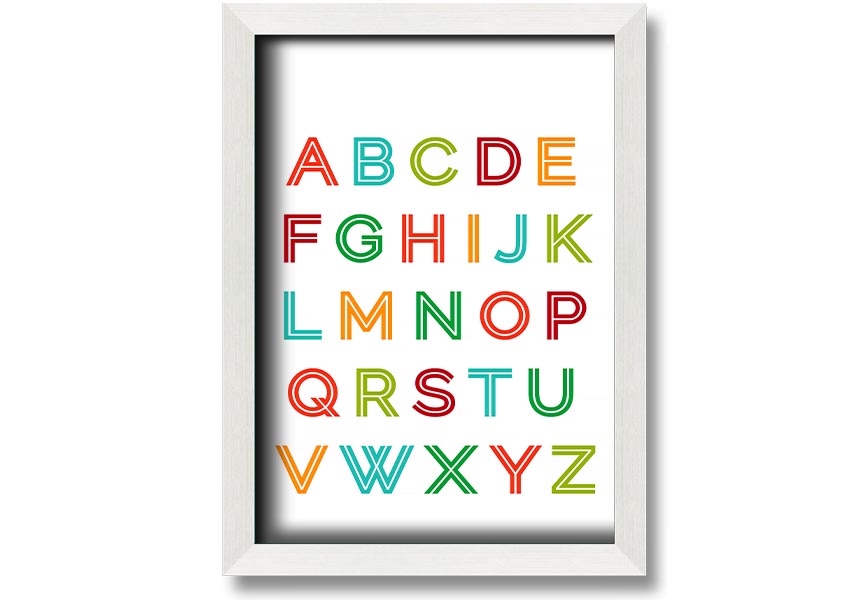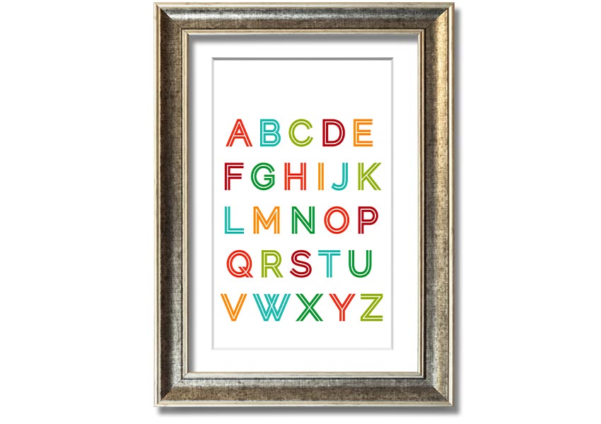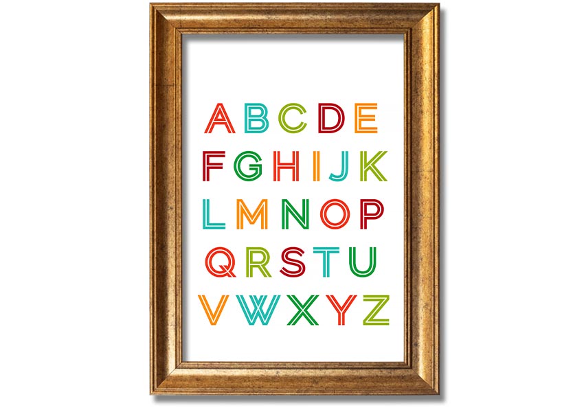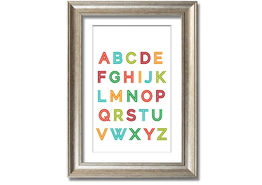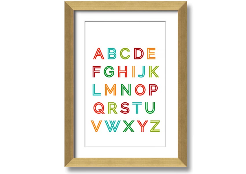 This framed print is an ideal choice for children's rooms, playrooms, or educational spaces. The colorful design not only brightens up the room but also encourages learning and engagement with the alphabet. Parents and educators alike will appreciate the dual purpose of this artwork, as it serves as both a decorative piece and a learning tool.
