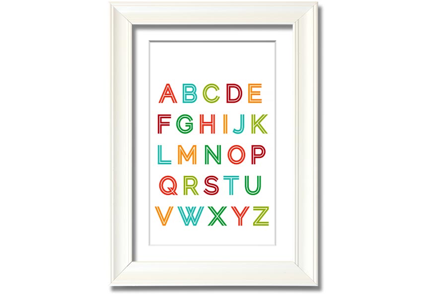 The Alphabet Colours framed print is a stunning addition to any home or children's room. This beautifully designed print features a vibrant array of colors that not only captures the attention of children but also serves as an educational tool for learning the alphabet. Each letter is represented in a unique and colorful way, making it an engaging piece of art that sparks curiosity and creativity.