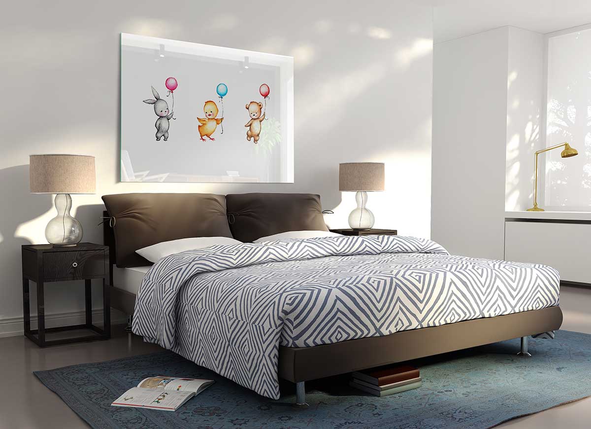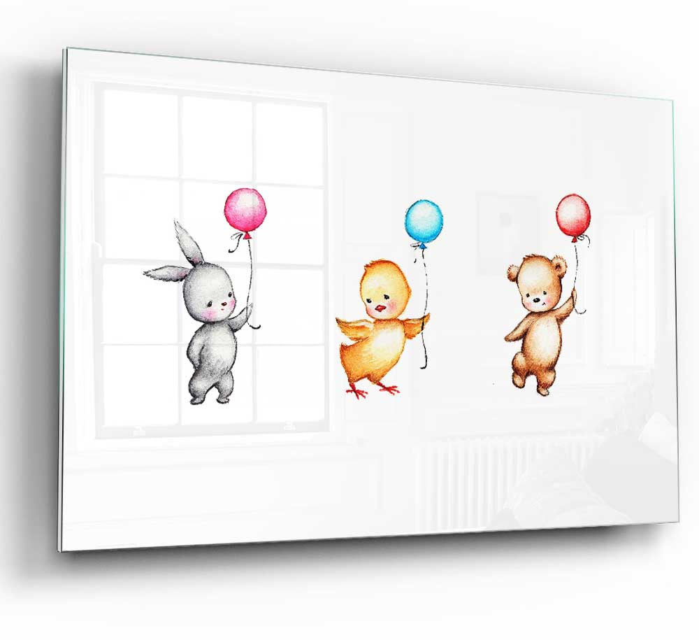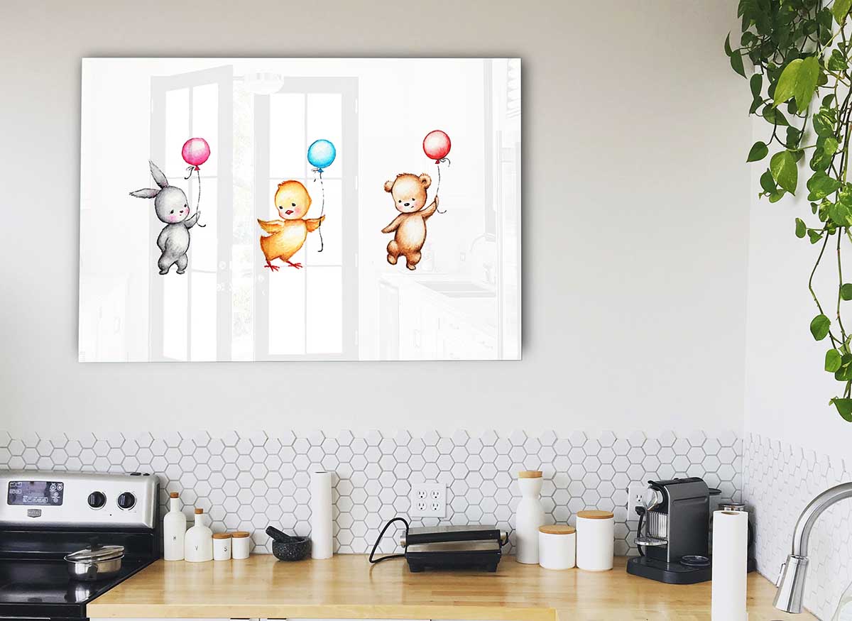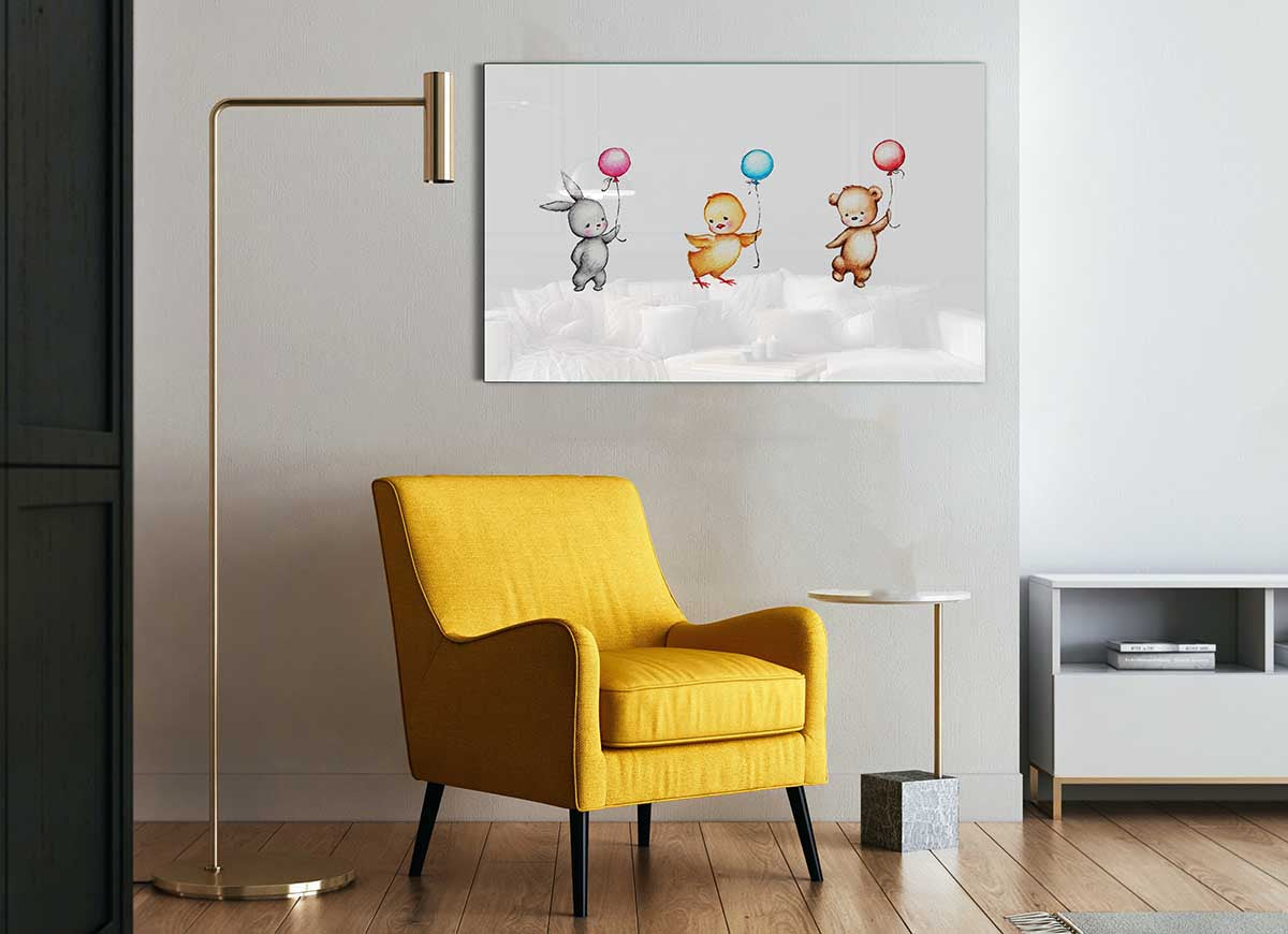 This glass print is not only suitable for children's rooms but also works beautifully in various settings. Whether you want to add a touch of fun to a nursery, create a cheerful atmosphere in a playroom, or even incorporate it into a modern living space, the Animal Balloon Family fits seamlessly into any decor style. Its versatility makes it a fantastic gift for baby showers, birthdays, or housewarming parties.