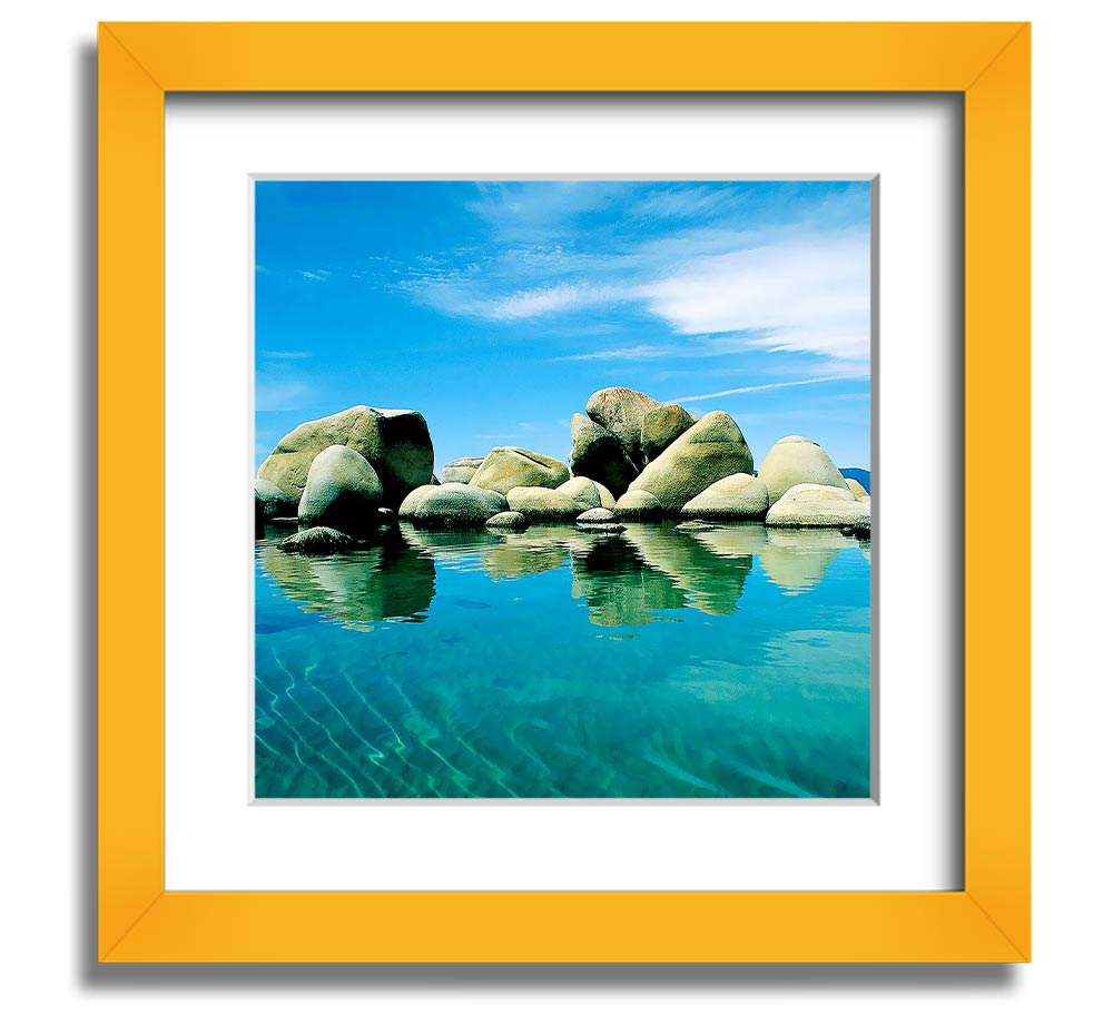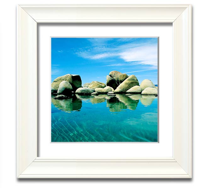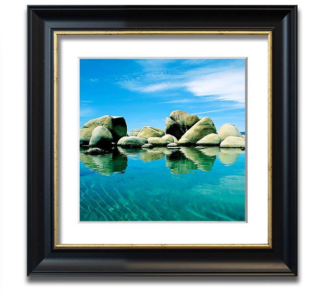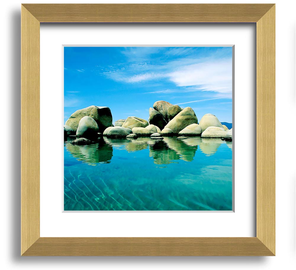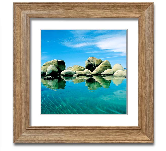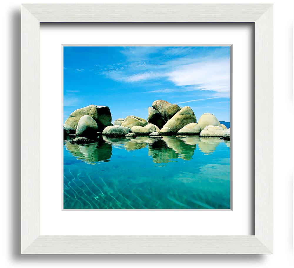 Maintaining the beauty of your Aqua Rock Pool Square Framed Print is simple. The high-quality materials used in its creation ensure that it is resistant to fading and wear. To keep it looking its best, simply dust the frame regularly and avoid placing it in direct sunlight for extended periods. This easy maintenance allows you to enjoy your artwork without the worry of deterioration.
