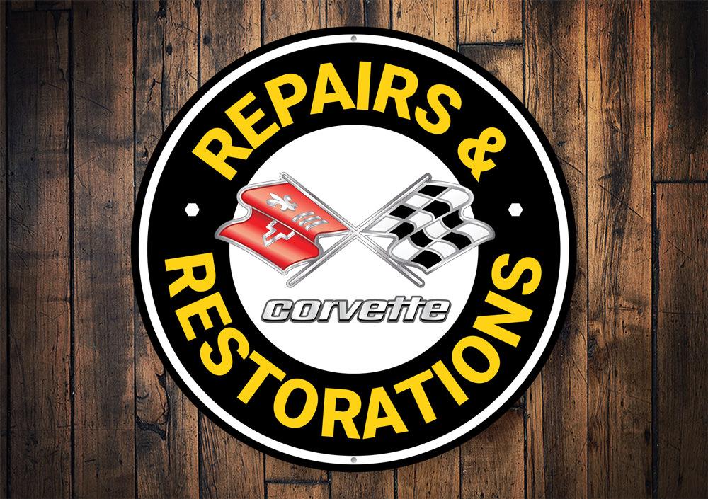 Introducing the Corvette Repairs and Restoration Car Sign, a must-have decorative piece for any car enthusiast's garage or man cave. This eye-catching sign not only adds a touch of style but also serves as a conversation starter, making it the perfect addition to your automotive-themed decor. With various car brands available, including Chevy, General Motors, and more, you can choose the one that resonates with your passion for cars.