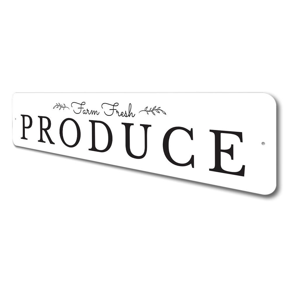 Introducing our stunning Farm Fresh Produce Sign, a perfect addition to any home or garden space. Crafted from high-quality aluminum, this sign not only serves as a decorative piece but also as a conversation starter. Whether you're looking to enhance your kitchen, yard, or even your man cave, this sign is designed to catch the eye and bring a touch of charm to your surroundings.