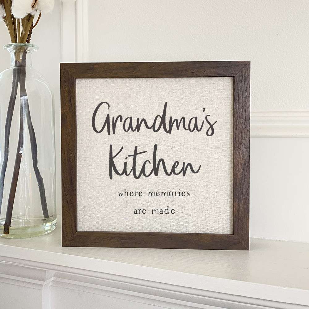 The Grandma's Kitchen - Framed Sign makes for an excellent gift for housewarmings, weddings, or any special occasion. Its heartfelt message and charming design resonate with anyone who appreciates the warmth of home-cooked meals and family gatherings. Surprise your loved ones with a thoughtful gift that they can cherish for years to come.
