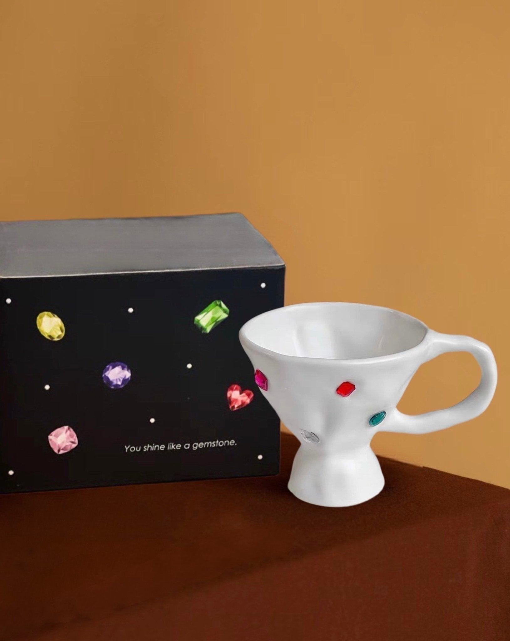 Elevate your morning routine with our Handmade Ceramic Gemstone Irregular Coffee Mugs. These chic and stylish designer mugs are handcrafted to perfection, making them a unique addition to your kitchenware. With their eye-catching gemstone designs and irregular surfaces, these mugs are perfect for cool girls and couples who appreciate artistry in their everyday items.