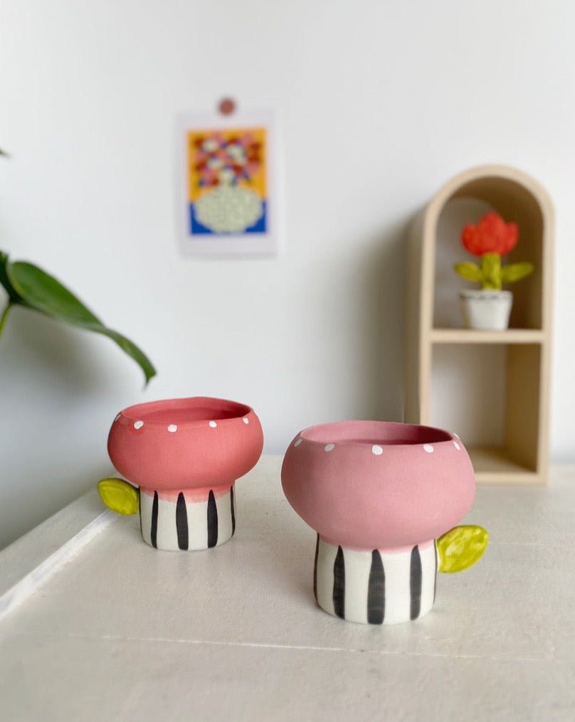 Our Handmade Pottery Decorative Flower Planters are the perfect addition to any home or garden. Crafted with care, these planters are designed to bring a touch of creativity and style to both indoor and outdoor spaces. Each planter features a unique funky flower design that not only adds a pop of color but also showcases your favorite plants, herbs, and flowers beautifully.