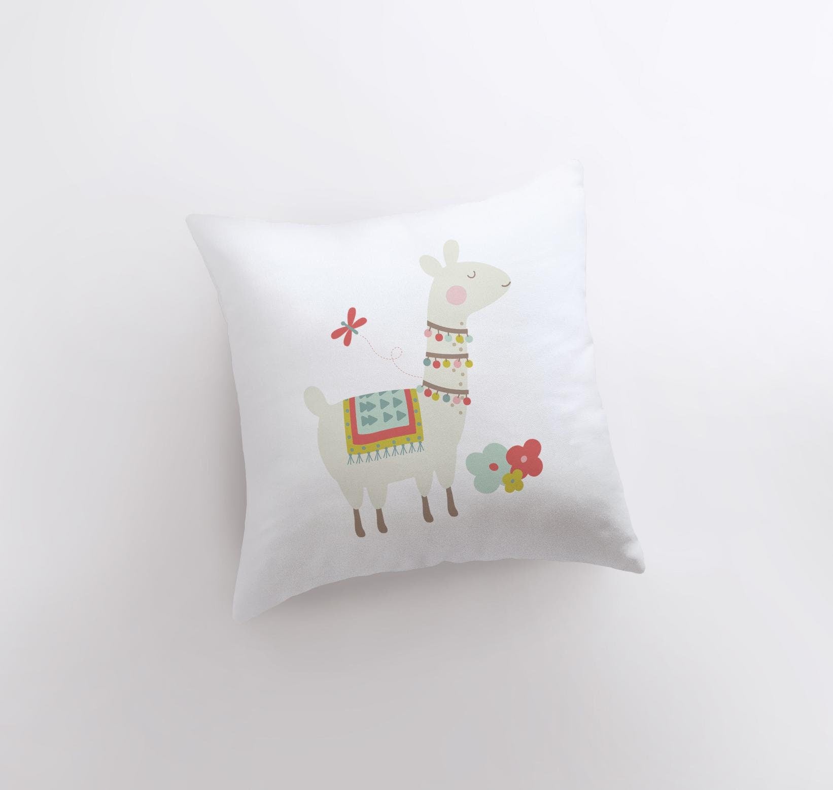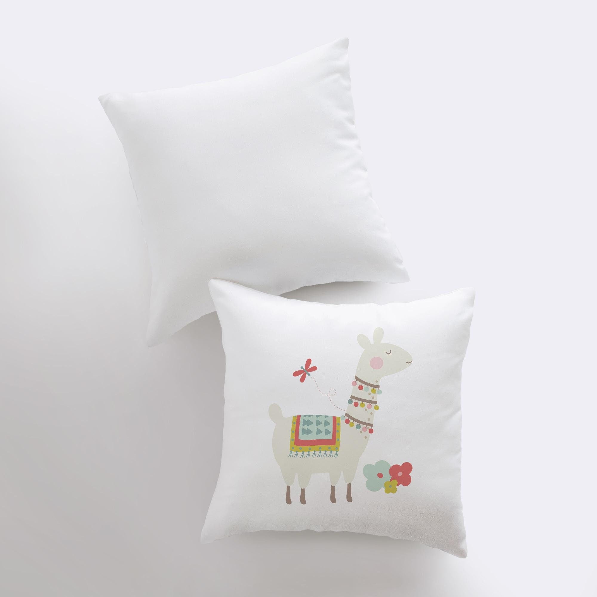 The Llama with Necklace pillow is available in a variety of sizes, ranging from 8x8 inches to a generous 28x28 inches. This versatility allows you to choose the perfect size for your space, whether you want a small accent pillow or a larger statement piece. The front of the pillow features an adorable llama design, while the back is a clean white, making it easy to match with any decor.