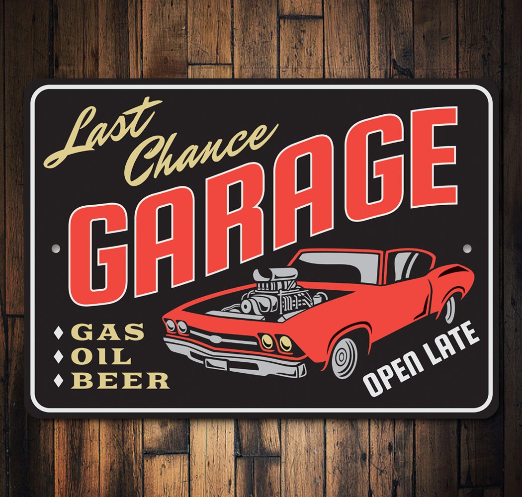 One of the standout features of the Last Chance Hot Rod Garage Sign is its customizable nature. You can add a personal touch by customizing the text on the sign, making it an excellent gift idea for friends or family members who are passionate about cars. Whether it's for a birthday, housewarming, or just because, a personalized sign adds a special touch that shows you care.