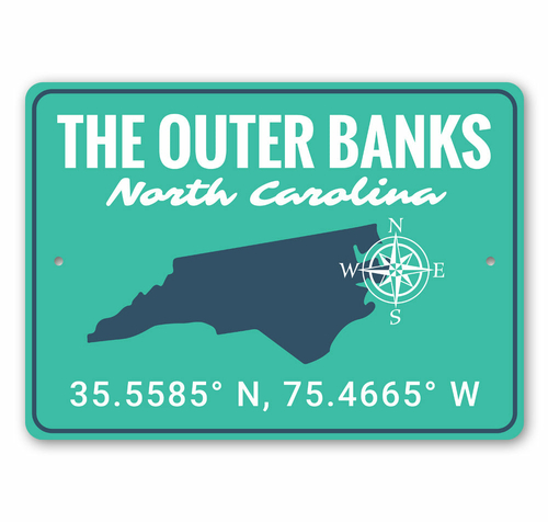 Explore our extensive collection of personalized aluminum signs for any occasion. From business signs to beach house decor, we have a design that fits your needs. Choose your design and buy it now to elevate your space with the Outer Banks Coordinates Sign!